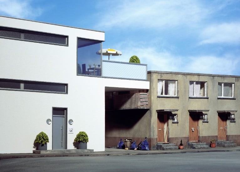 Kunert’s work explores the surreal scenes of everyday life and relates stories of the depths of life, all while saying something about people. His models, which often depict interior spaces, are the expression of our culture, past, present, and future. The inner worlds of homes are reflections of the social zeitgeist and contain much of what goes on inside and around us, as noted by Elizabeth Clarke in an essay of the photo book Wunderland.