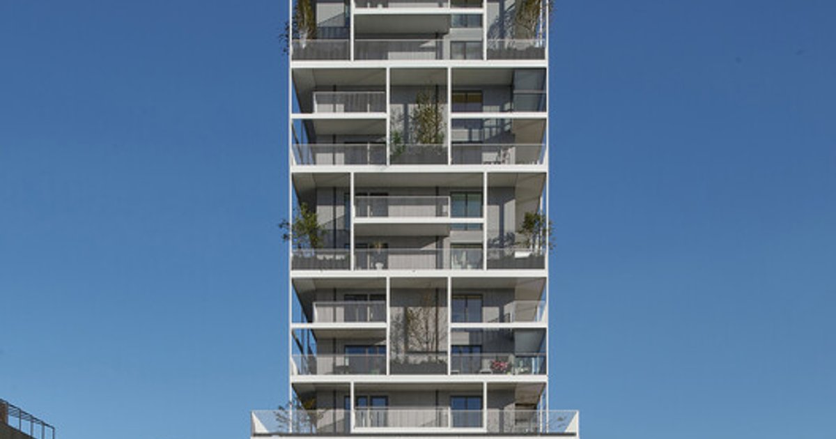 A defining architectural element is the deep white steel façade, which wraps the building in a generous framework of private balconies, winter gardens, and vertical green terraces. Beyond expanding living space, these elements act as passive cooling devices and privacy buffers. Integrated into the façade are 57 double-height planting units, each supporting trees, shrubs, grasses, and habitat for local fauna. These vertical gardens cultivate a lush microclimate, enhance biodiversity, and give the building a shifting seasonal expression.