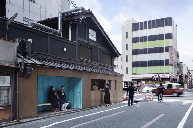 This facade strategy imbues the cafe stand with a timeless, weathered character reminiscent of Kyoto’s rich cultural heritage, subtly echoing the confectionery shop’s longstanding presence just a three-minute walk away.