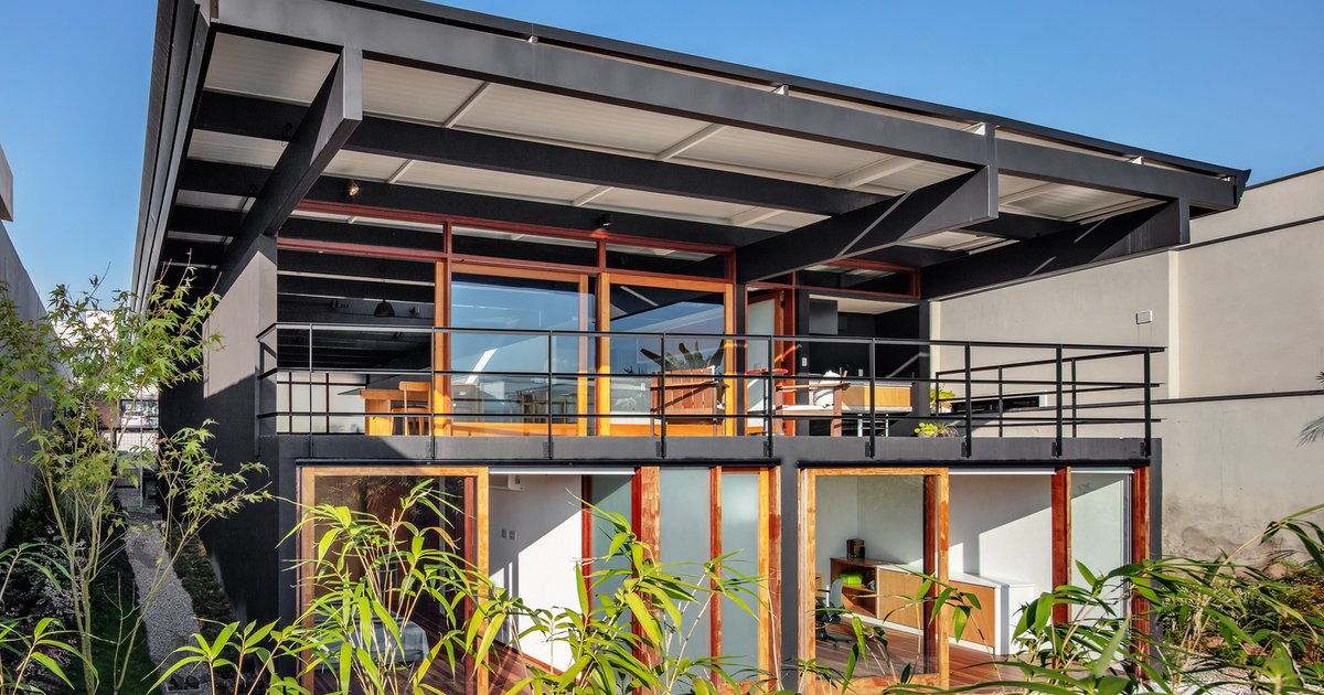 - Wood frames and interior finishes add warmth, contrast, and a natural balance against the raw concrete.