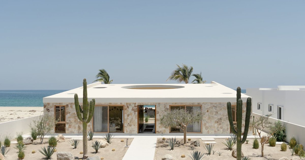Suna House by YDR Estudio in La Ribera, Mexico, blends desert-inspired architecture, natural materials, central circular patio, and seamless indoor-outdoor coastal living.