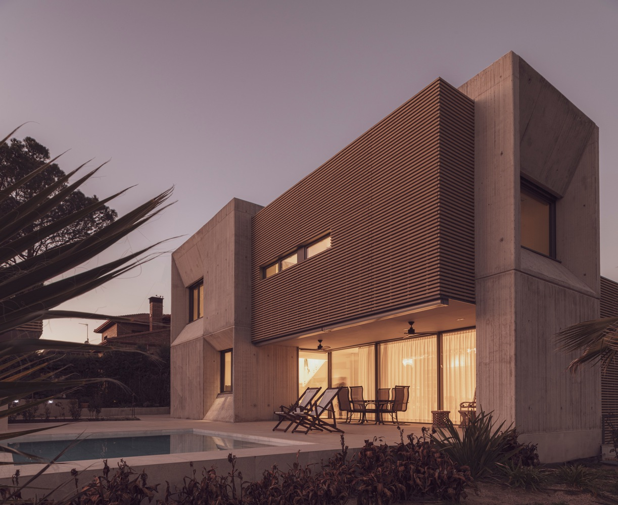 Silos 8 House's design philosophy hinges on the interplay between light and shadow, a dynamic relationship that breathes life into the structure. The house's exterior, characterized by its textured volumes and deep openings, captures the changing light, creating a living canvas that reflects the day's mood and the seasons' shifts.
