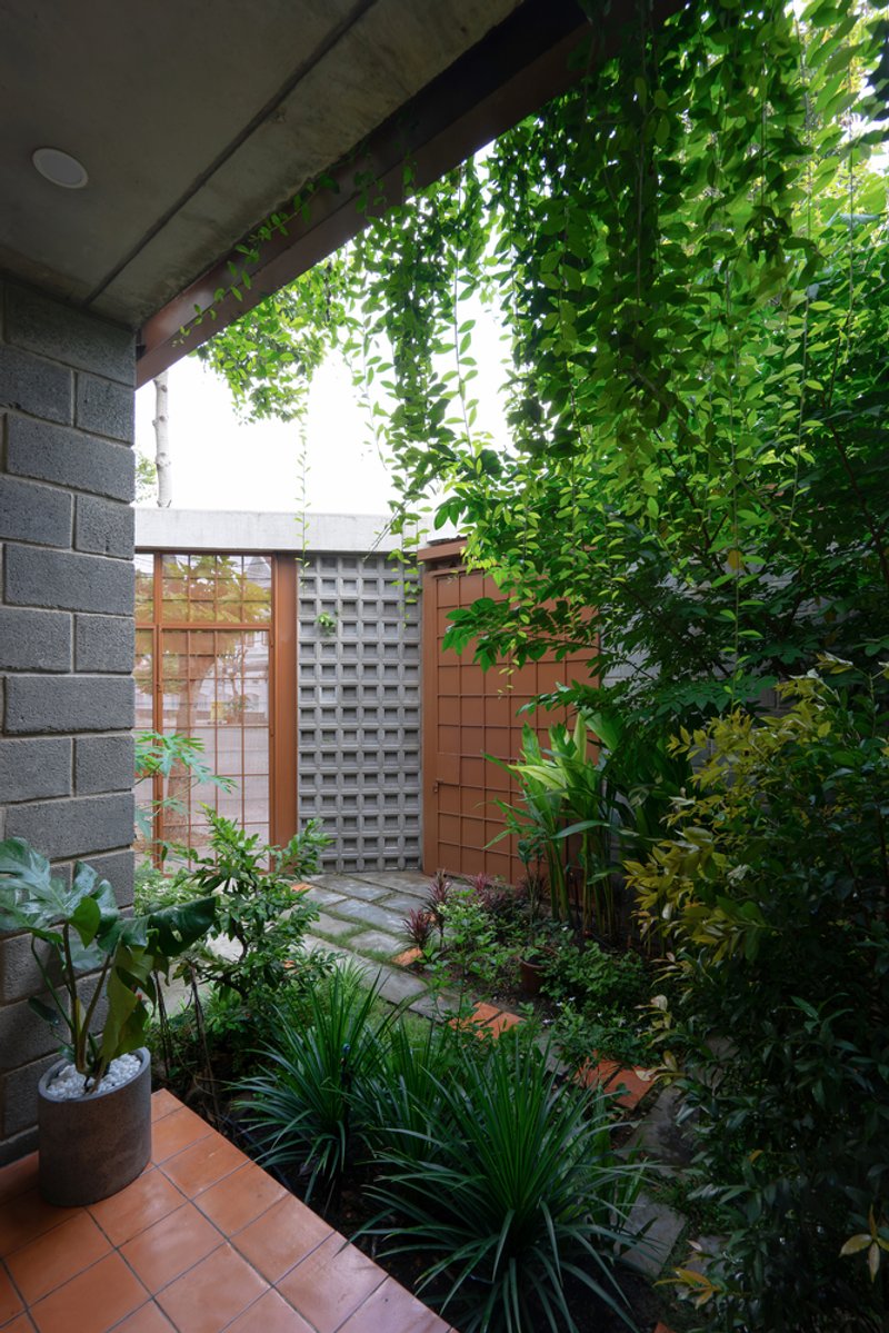One of the most remarkable features of the House in Binh Duong is its seamless transition between indoor and outdoor spaces. The integration of verandas, courtyards, and corridors enhances air circulation and softens natural light. These buffer spaces not only improve the living conditions within the home but also create a harmonious connection with nature.