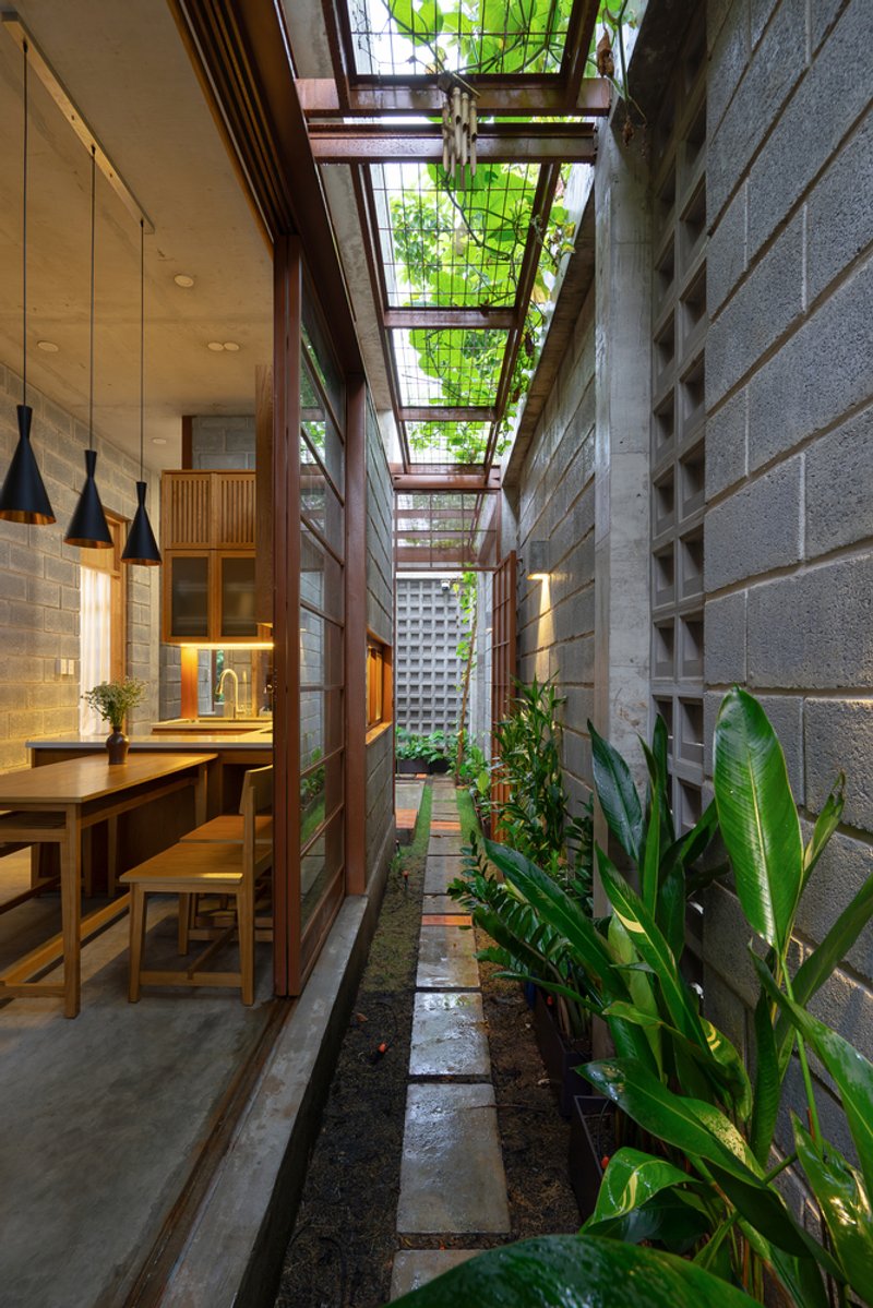 The use of local materials also contributes to the overall sustainability of the house. By reducing transportation costs and relying on indigenous resources, the environmental footprint of the project is minimized, making it a model for sustainable construction in Vietnam.