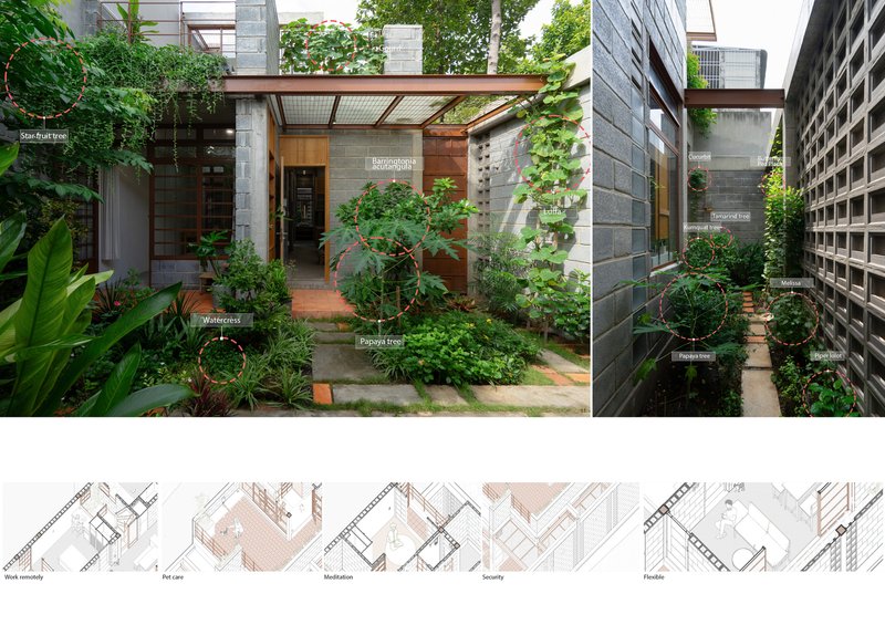 The House in Binh Duong was conceived with the primary goal of aligning with the local climate while supporting an ecological lifestyle. Through the integration of vegetable gardens and fruit trees, the project promotes self-sufficiency in food production. By utilizing adaptive architecture, the house allows for a better connection with the environment, fostering a sustainable ecosystem within the home itself.