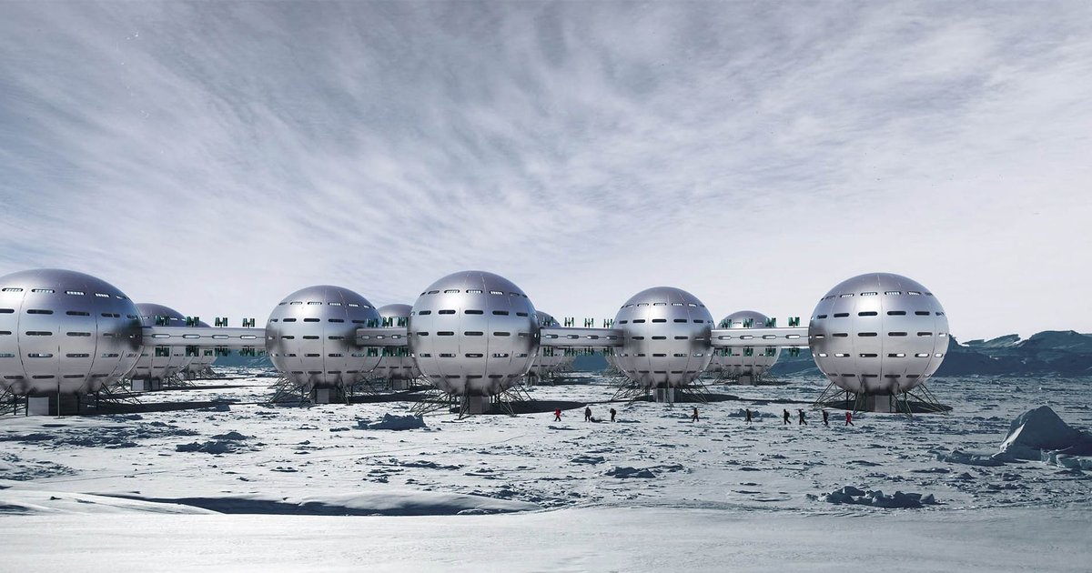 Constructed using fiber-reinforced polymer (FRP), the station’s materials provide superior durability, thermal insulation, and resistance to extreme Arctic conditions. Wind turbines mounted on the corridors generate renewable energy, reinforcing the station’s self-sufficiency.