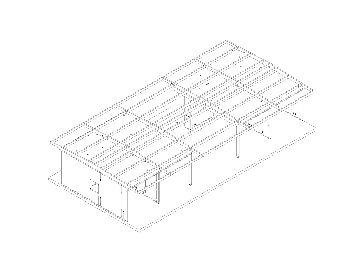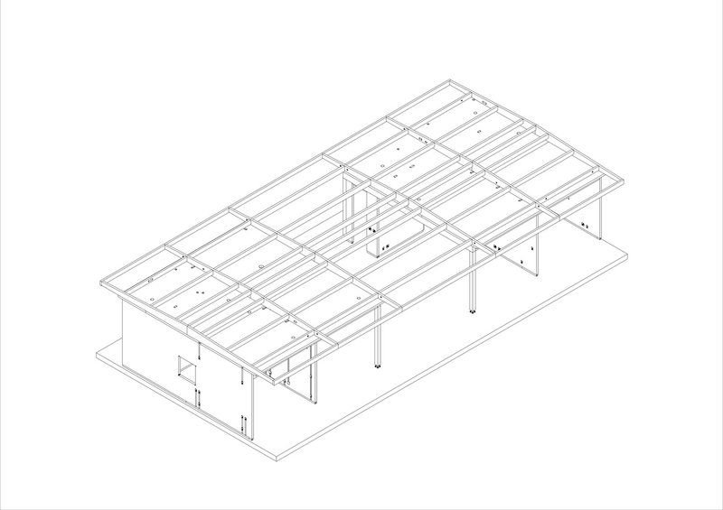 The house’s translucent roofing plays a dual role. It shields the CLT panels from direct rain exposure, prolonging their durability, and simultaneously allows filtered daylight into the central balcony and overhanging eaves. This design move reduces the need for artificial lighting during the day and enhances passive solar gain, contributing to the home's overall energy efficiency.