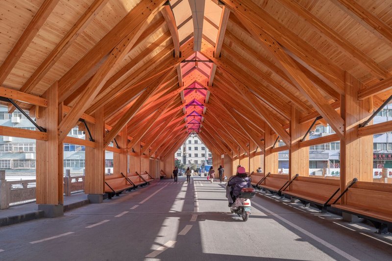 In line with the principles of sustainable corridor bridges, the New Herringbone Bridge maintains the main structure of the original bridge, emphasizing conservation and sustainability. The addition of a timber structure and the reuse of white marble breast boards from the old bridge underscore the project's commitment to environmental stewardship.