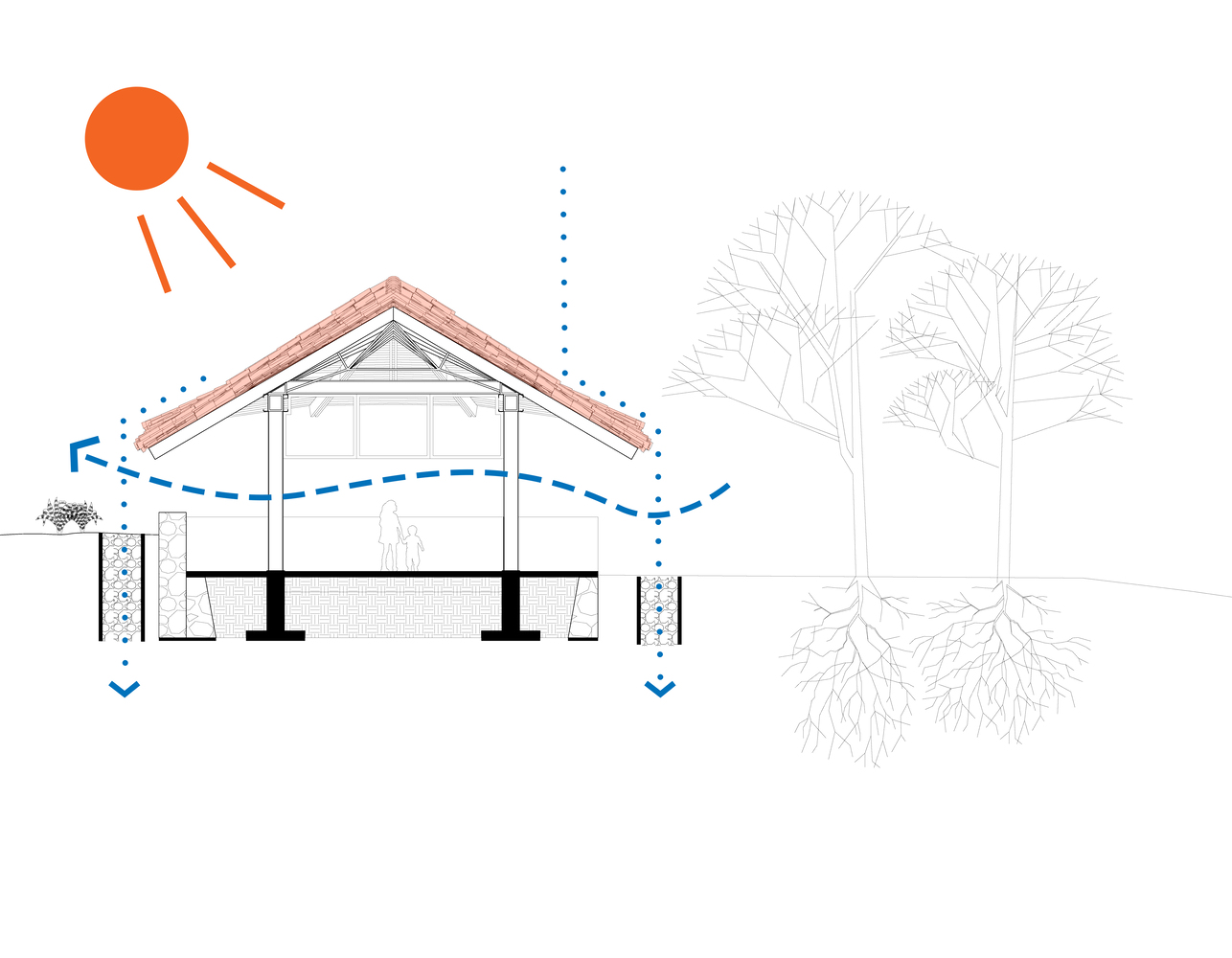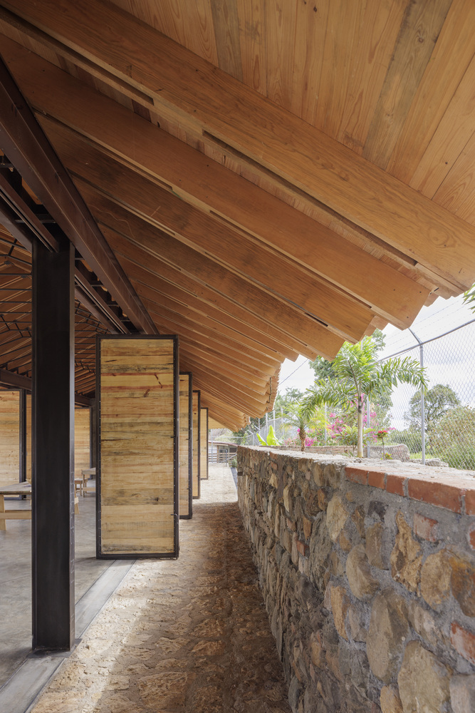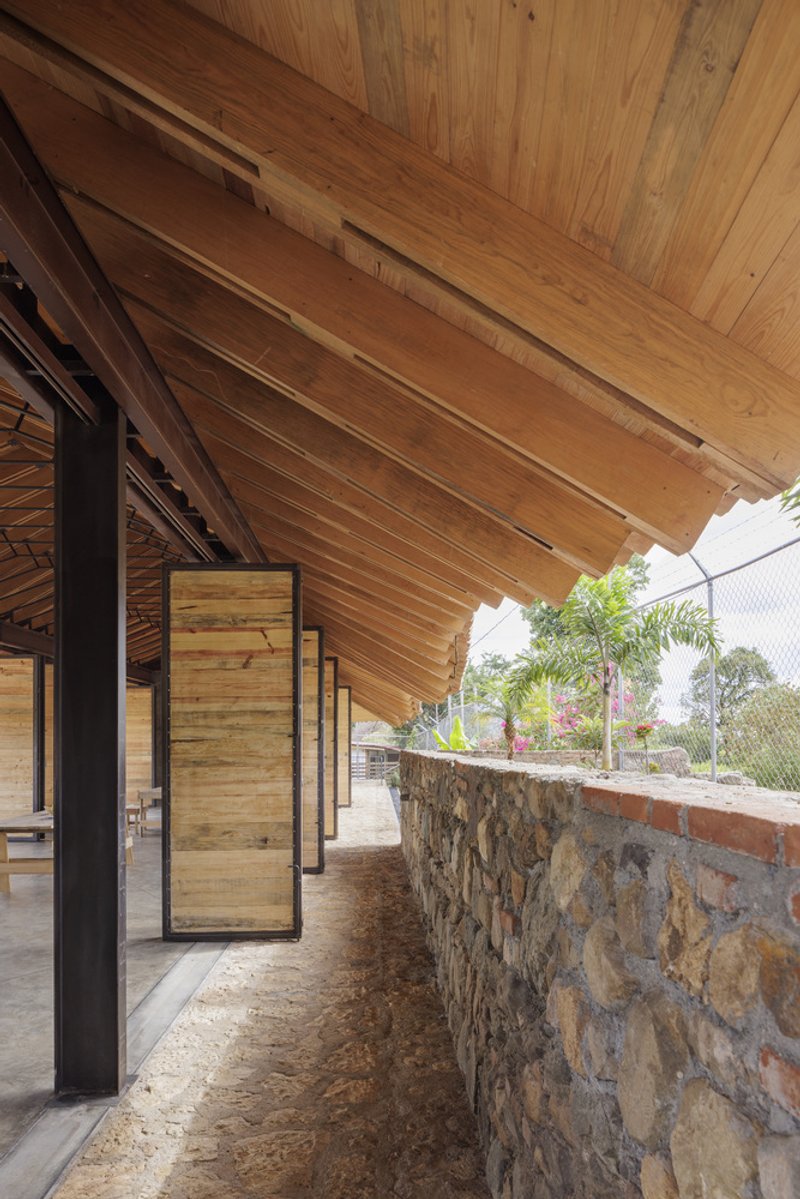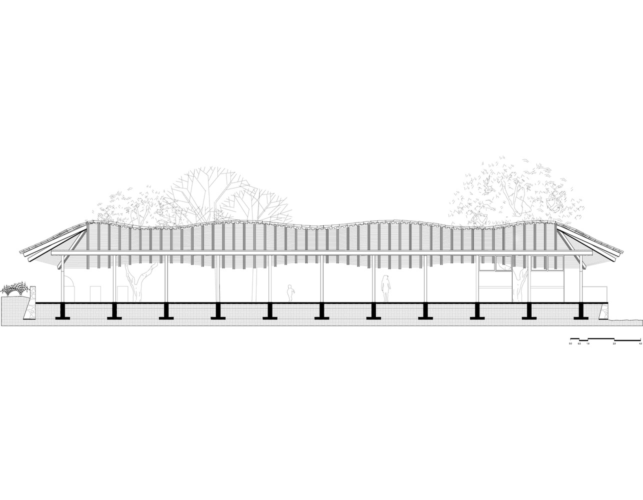 In line with its commitment to sustainability, the Rural School uses recycled materials and locally sourced materials, promoting a deeper connection between the community, students, and the natural landscape. The roof design is a key element that minimizes material usage while ensuring a comfortable internal temperature. The height of the roof allows air to circulate freely, offering natural ventilation and light while reducing energy consumption.