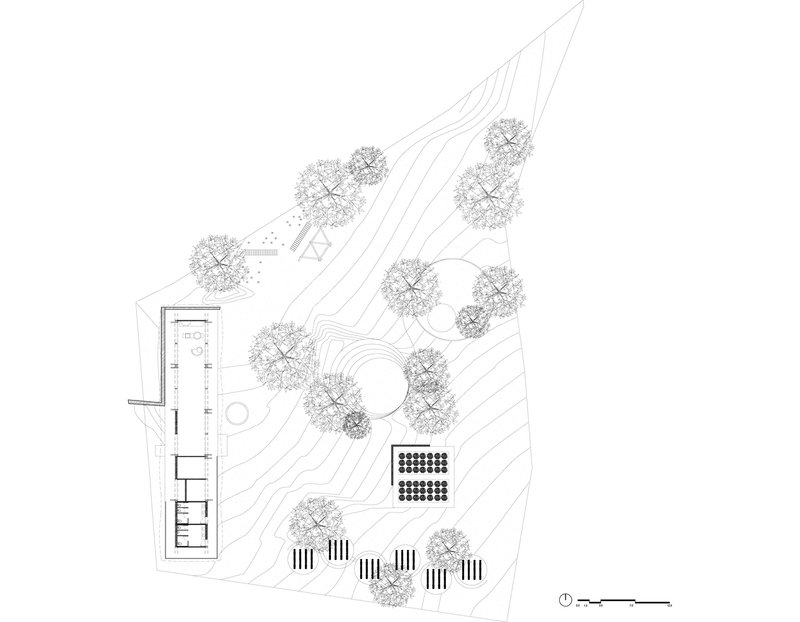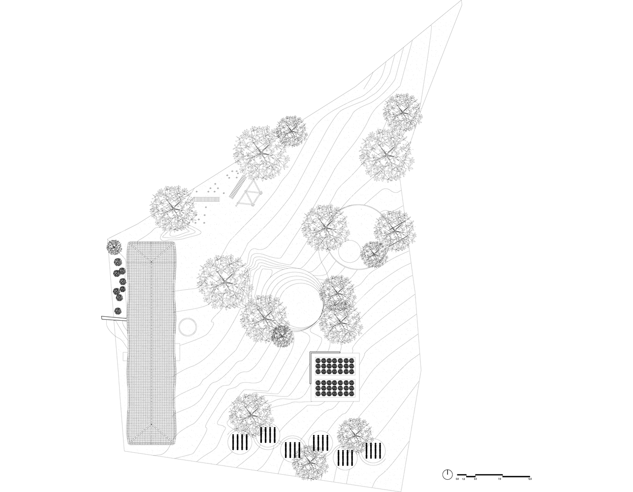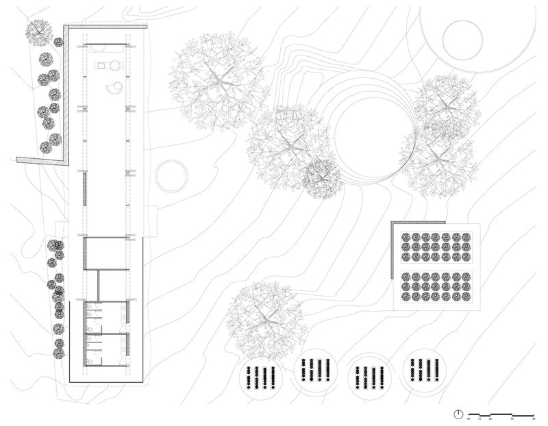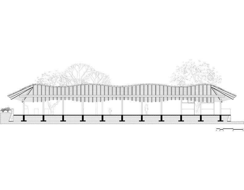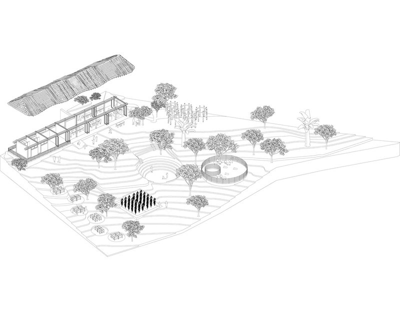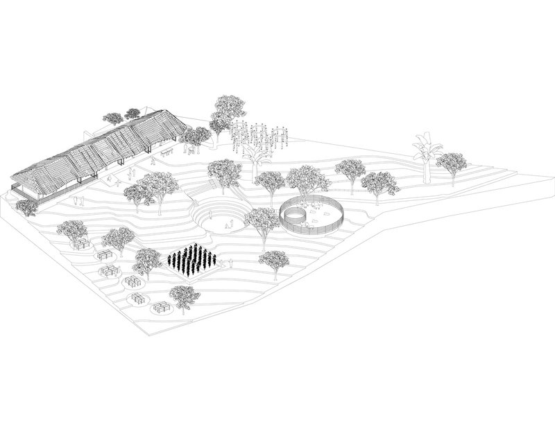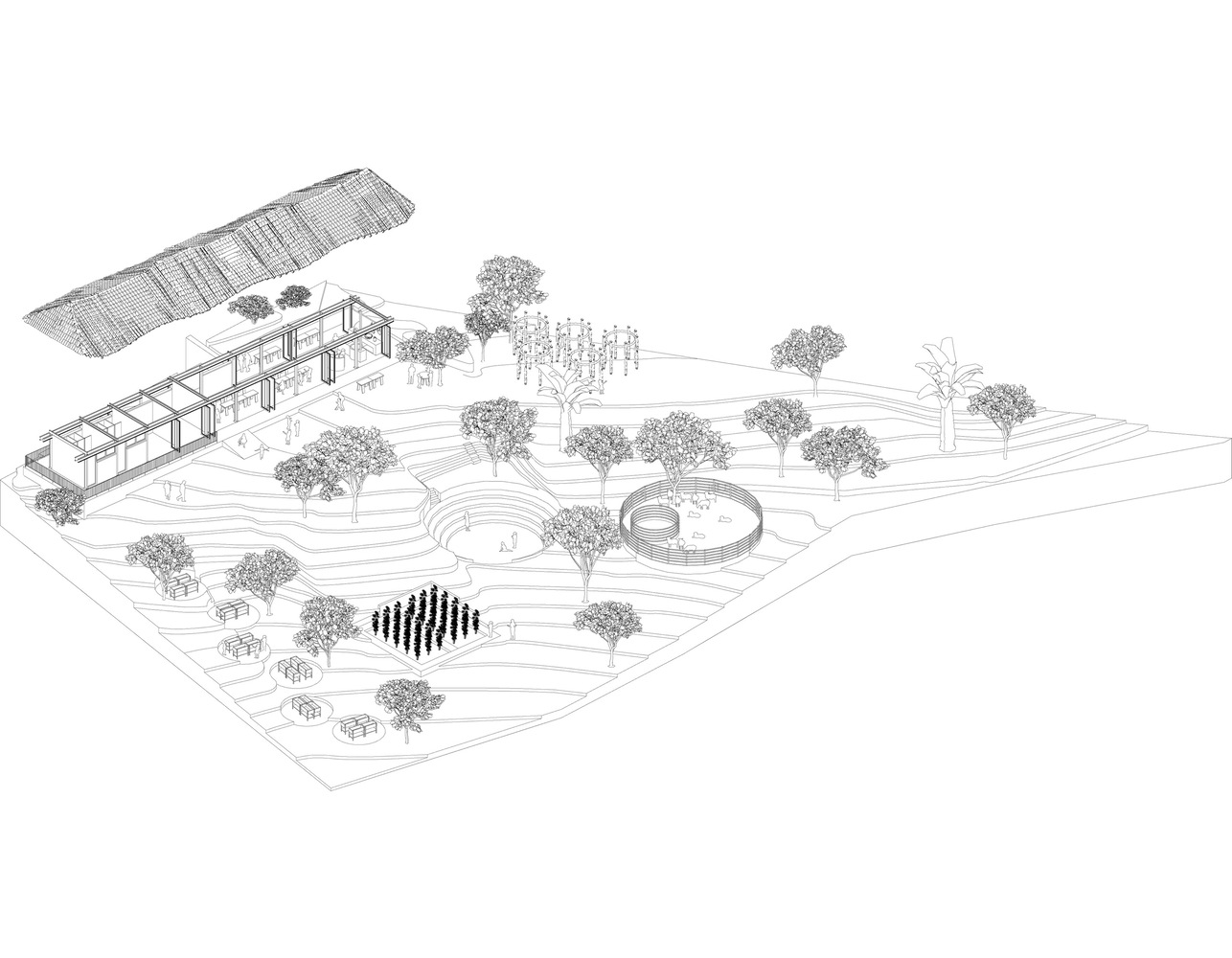 The design revolves around creating a shade-giving roof supported by a light and flexible structure, facilitating a seamless connection between people, nature, and architecture. By dissolving boundaries between indoor and outdoor spaces, this school fosters an open, communicative environment. The flexible, open structure also encourages a dynamic learning space that responds to the natural surroundings.