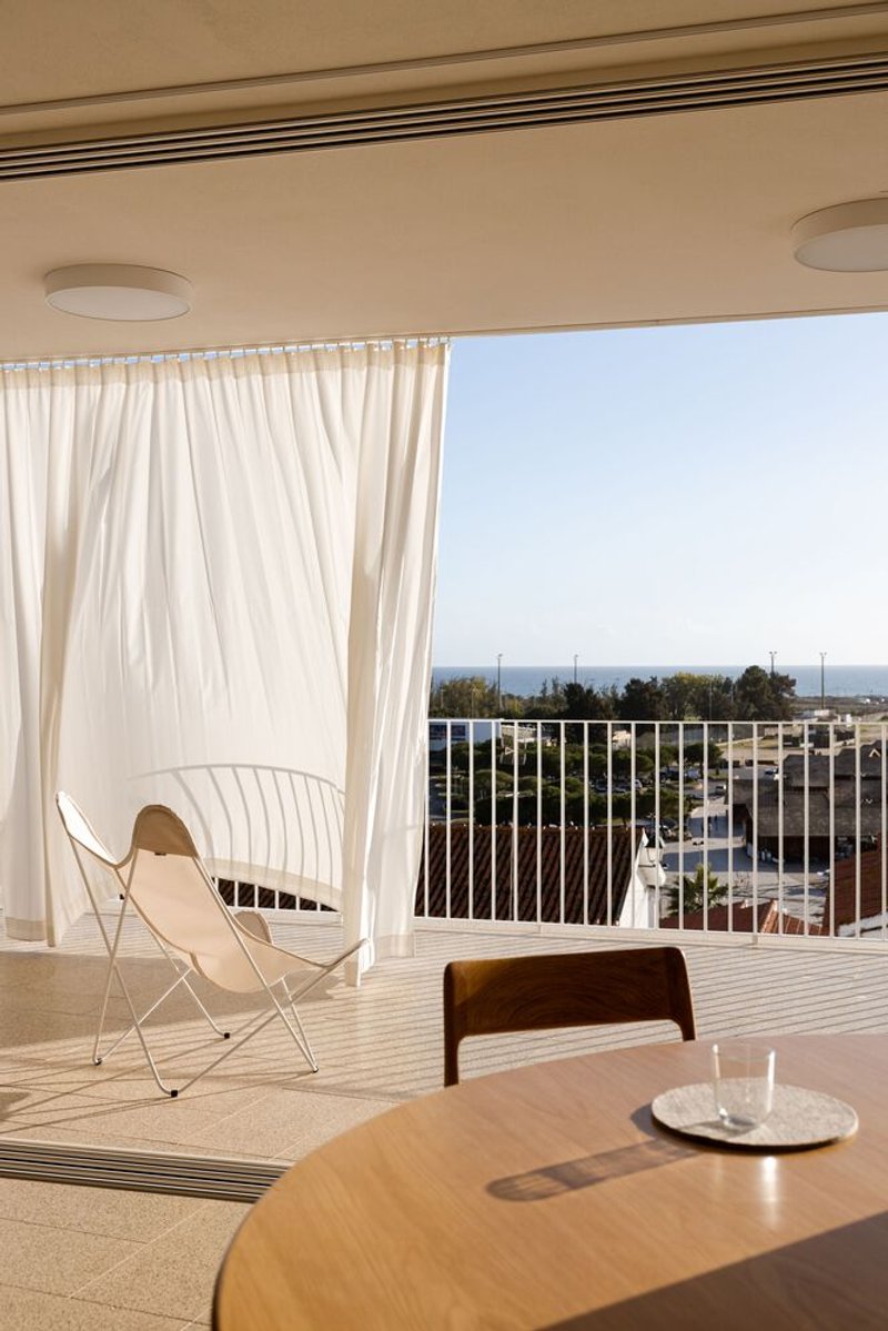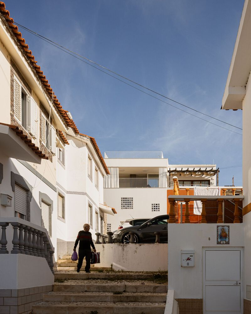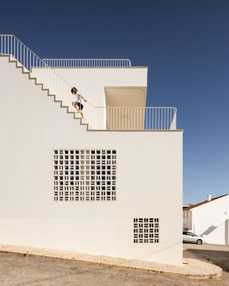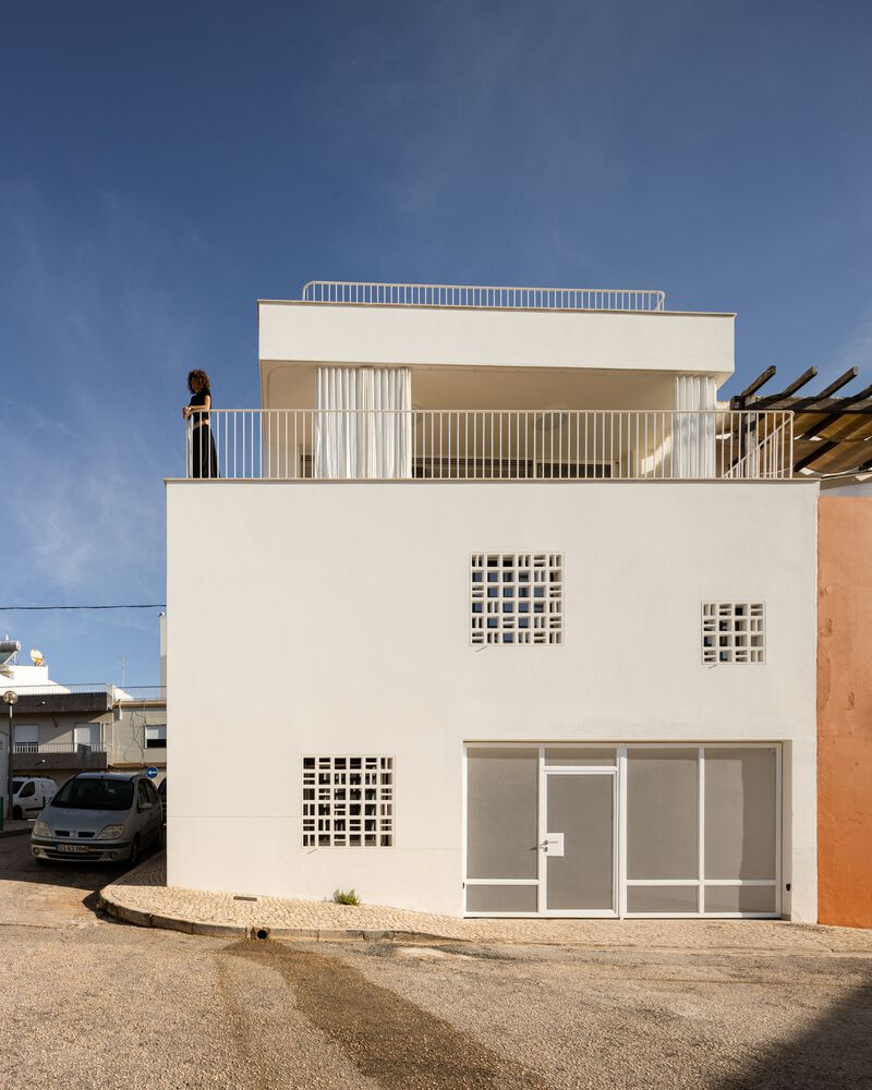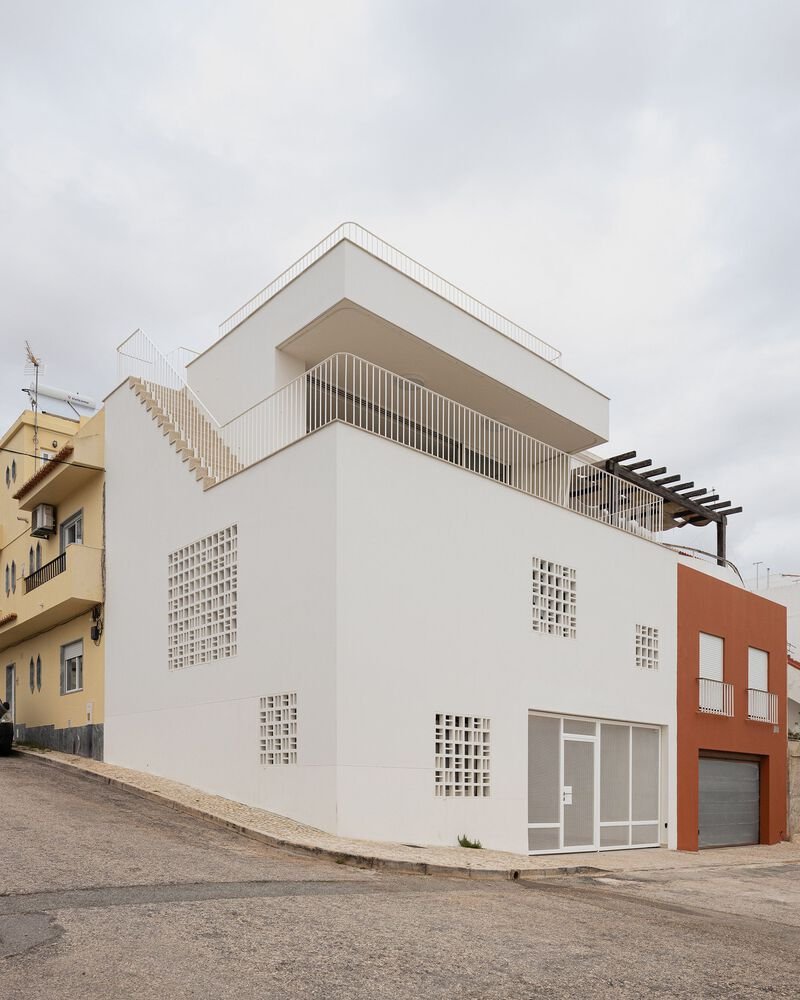 Situated in the village of Alvor, on the Algarve coast, Casa M overlooks the Atlantic Ocean, offering breathtaking views while adhering to the region’s architectural vernacular. The design carefully takes into account the local climate, characterized by hot summers, humid winters, and the consistent Atlantic breeze. Designed as a townhouse, the building fits seamlessly into a narrow street, with half-floors maximizing its space and providing an optimal view of the surroundings.