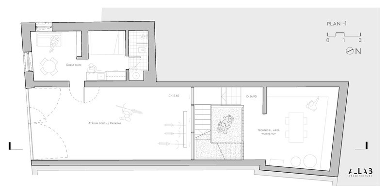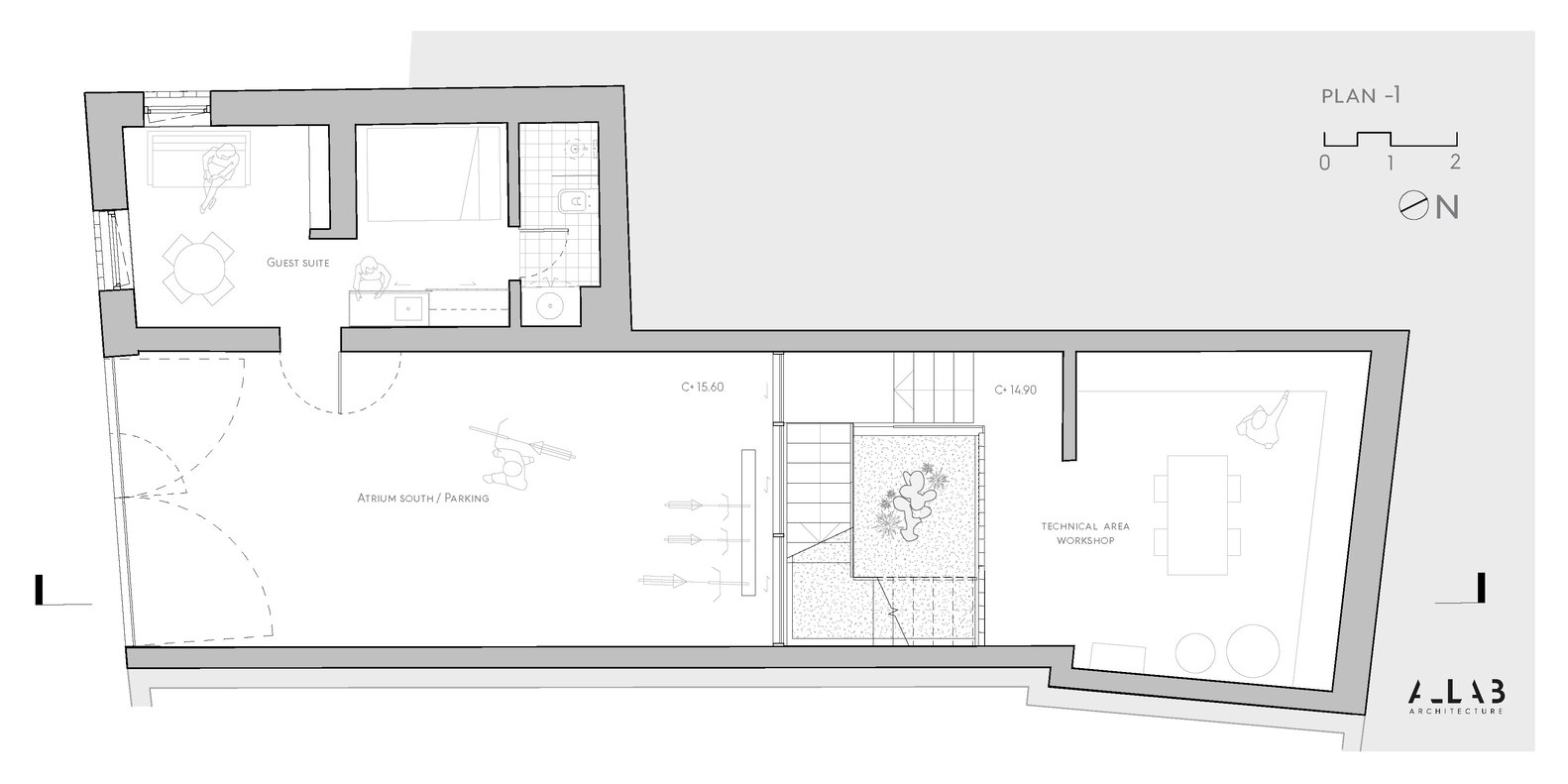 - Natural Ventilation: The use of a "stack" effect, in combination with a ventilated skylight, allows for efficient air circulation, keeping the interior naturally cool without relying on air conditioning.