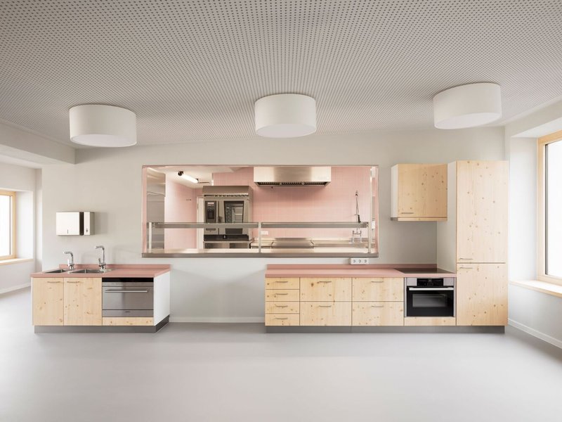 A key feature of the Campus-Kindergarten Merseburg is its direct access to the garden from the kitchen area. This connection not only facilitates outdoor activities but also supports the kindergarten's program of providing freshly cooked meals, teaching children about healthy eating habits and the importance of sustainability from a young age.