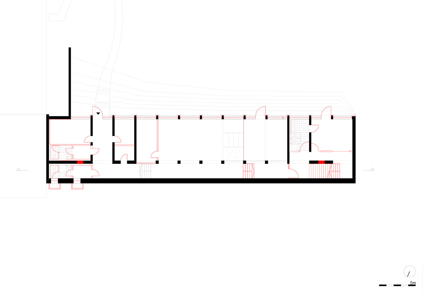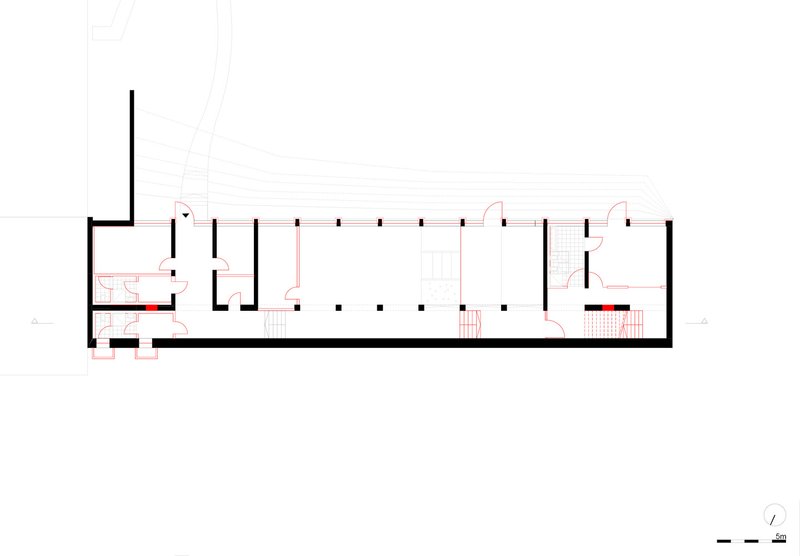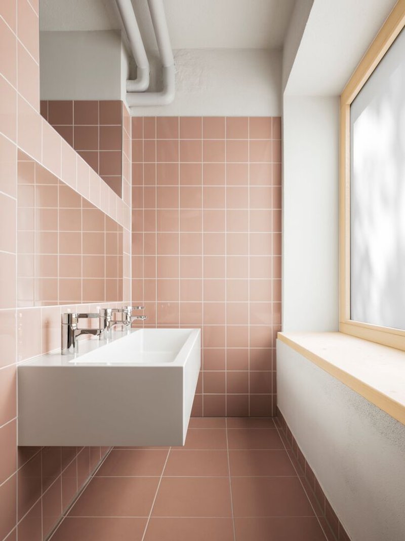 The interior design of Campus-Kindergarten Merseburg emphasizes open, multifunctional spaces that encourage active learning and play. The basement features an expansive play area, designed with spruce wood furniture and climbing structures, promoting physical activity and interaction. The use of light spruce wood, combined with vibrant colors like English red and turquoise, creates a warm and stimulating environment for children.