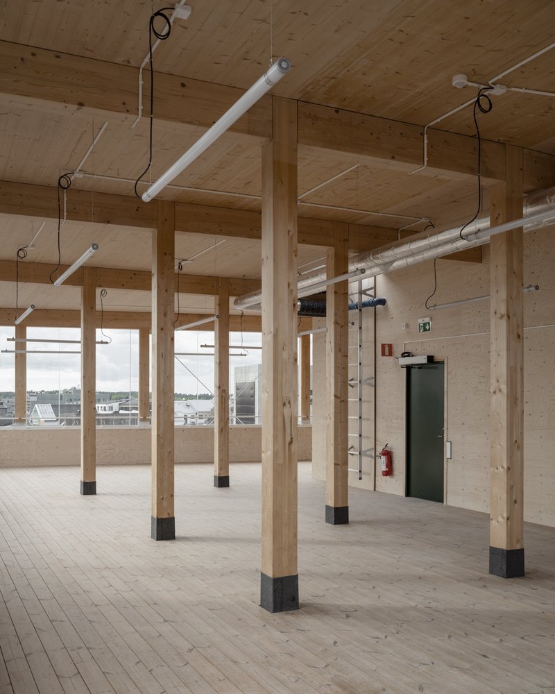 The structure’s framework consists of Cross-Laminated Timber (CLT), chosen for its low carbon footprint compared to traditional building materials like concrete. This choice underscores the project's commitment to environmental sustainability.