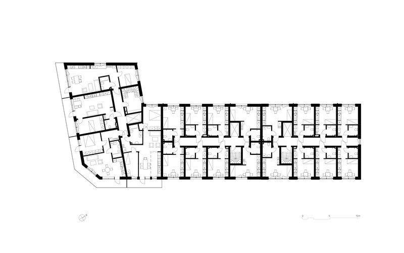 The housing complex features a mix of student and senior apartments, encouraging a vibrant, intergenerational community. Communal spaces such as the Felleshuset provide areas for interaction and social activities, strengthening community bonds.