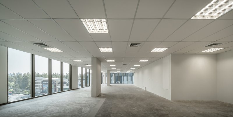 One of the key sustainability features of the Ritratana Office Building is its use of natural light. Large, north-facing curtain wall facades allow for maximum daylight penetration with minimal heat, reducing the need for artificial lighting and cooling systems.