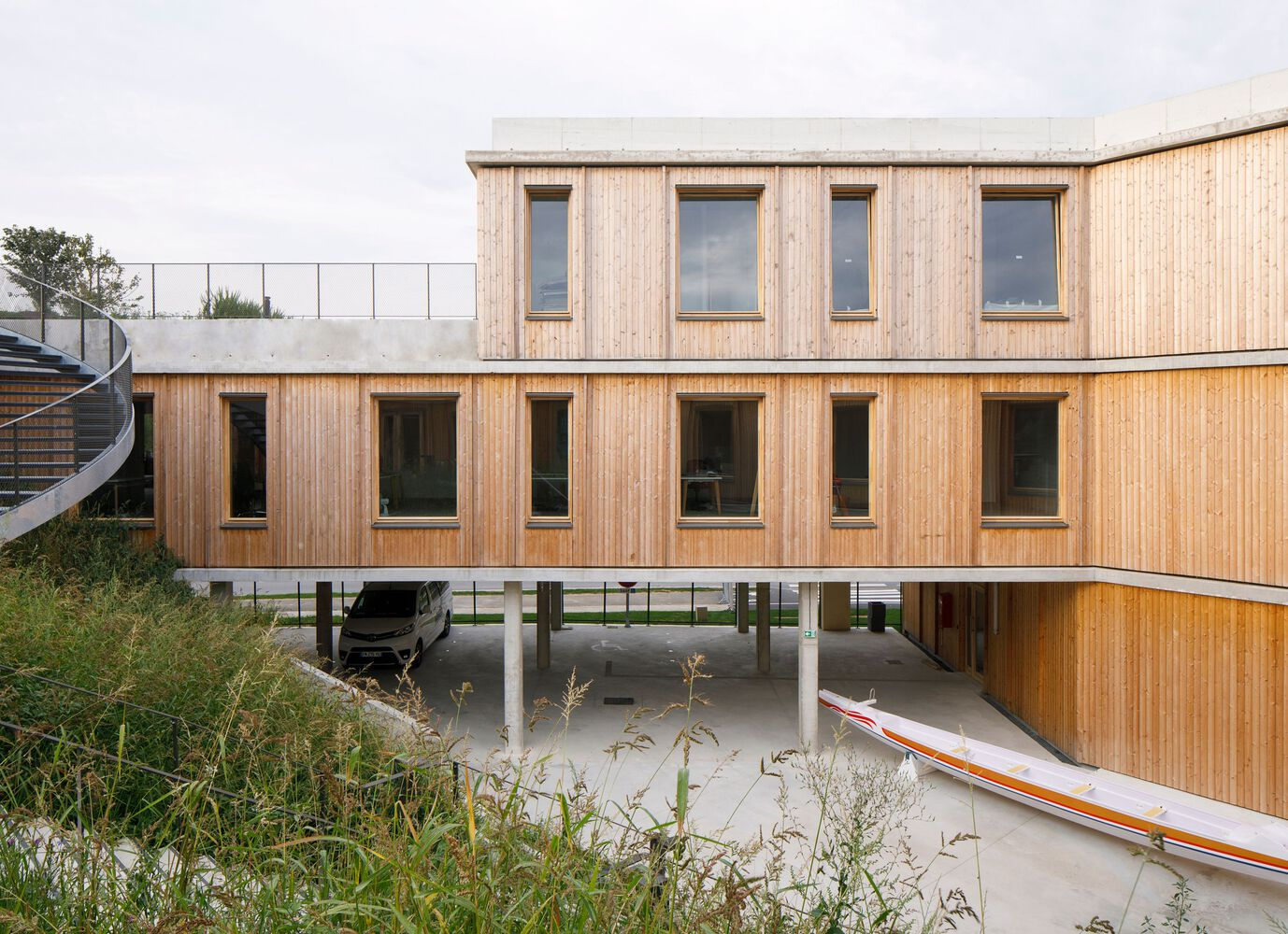 The project was conceived not only as an institutional headquarters but as a warm, inclusive home—open to both professional athletes and the public. Rather than standing apart, the building seamlessly integrates with the surrounding topography and the sporting culture of the lakefront venue. Emphasizing openness and visibility, it reinforces the identity of the Fédération Française de Canoë Kayak (FFCK) as a vital and accessible force in France’s sporting community.