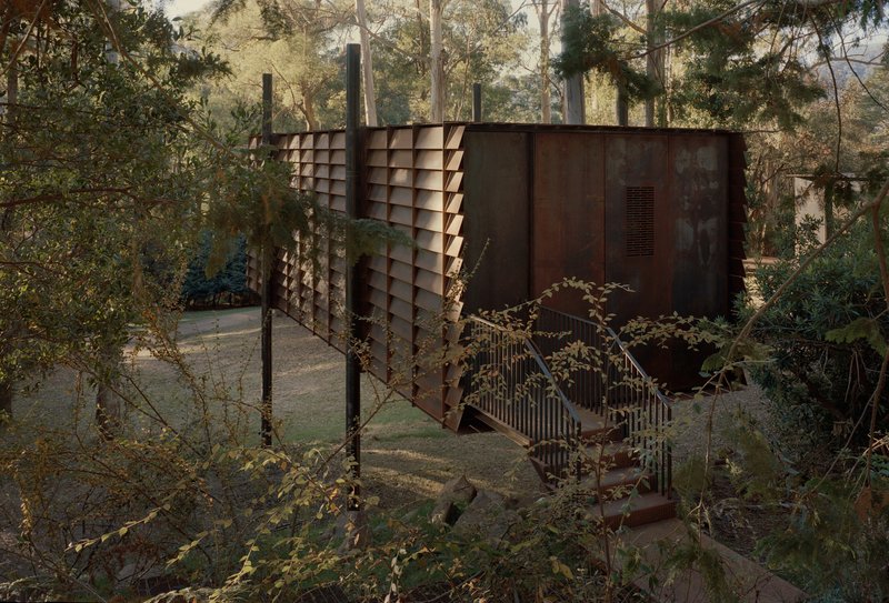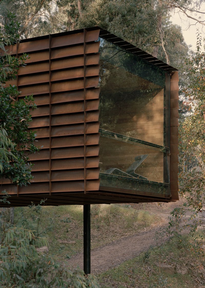 Situated in a BAL 40 bushfire zone, the Sawmill Treehouse required strict adherence to fire-resistant construction standards. Timber, a material often synonymous with treehouse architecture, was not an option. Instead, steel became the primary material, valued for its durability and non-combustibility.