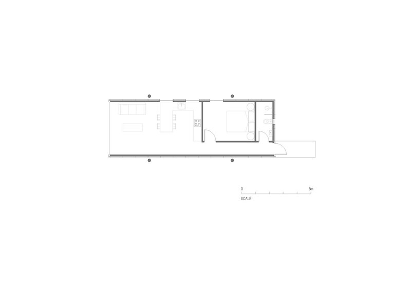 The site, located at the beginning of a gully where stormwater flows converge, required a design solution that elevated the structure above ground. Raising the building offered dual benefits—protection from potential flooding and the creation of functional space beneath.