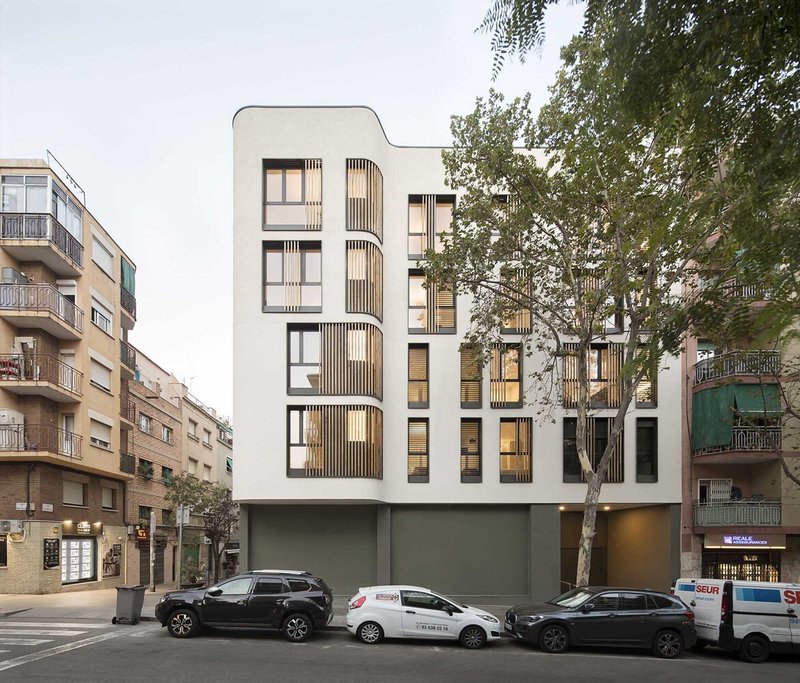 Spanning 2,600 m², the Joaquim Valls housing complex was envisioned to provide a modern living solution that respects the area's rich history and diverse urban fabric. Situated on a flat, rectangular plot of 429.67m², the project includes 18 dwellings, a commercial space, storage units, and parking facilities, addressing the complex demands of urban living.