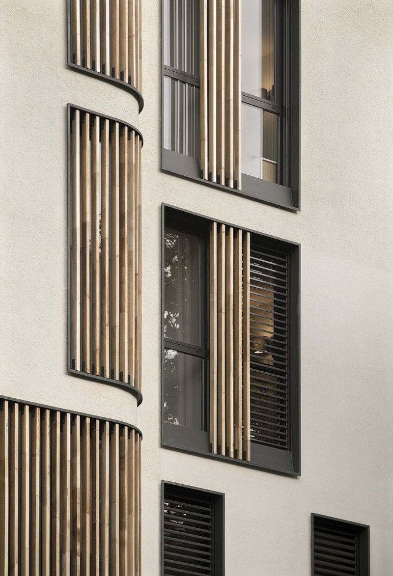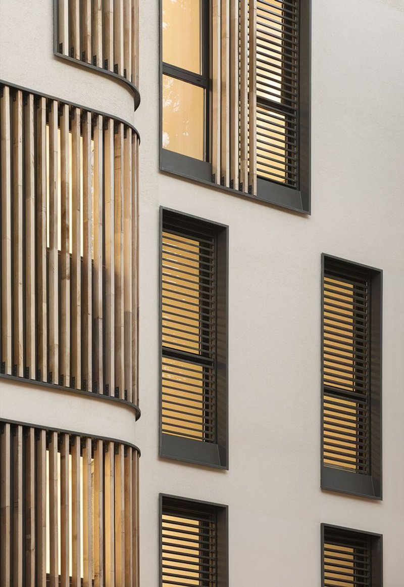 Addressing the challenge of providing natural light and comfort to urban residences, the architects incorporated large, multi-functional openings. These openings are designed to offer solar control, privacy, and acoustic regulation, ensuring that each living space is bathed in natural light and offers maximum comfort to its inhabitants.