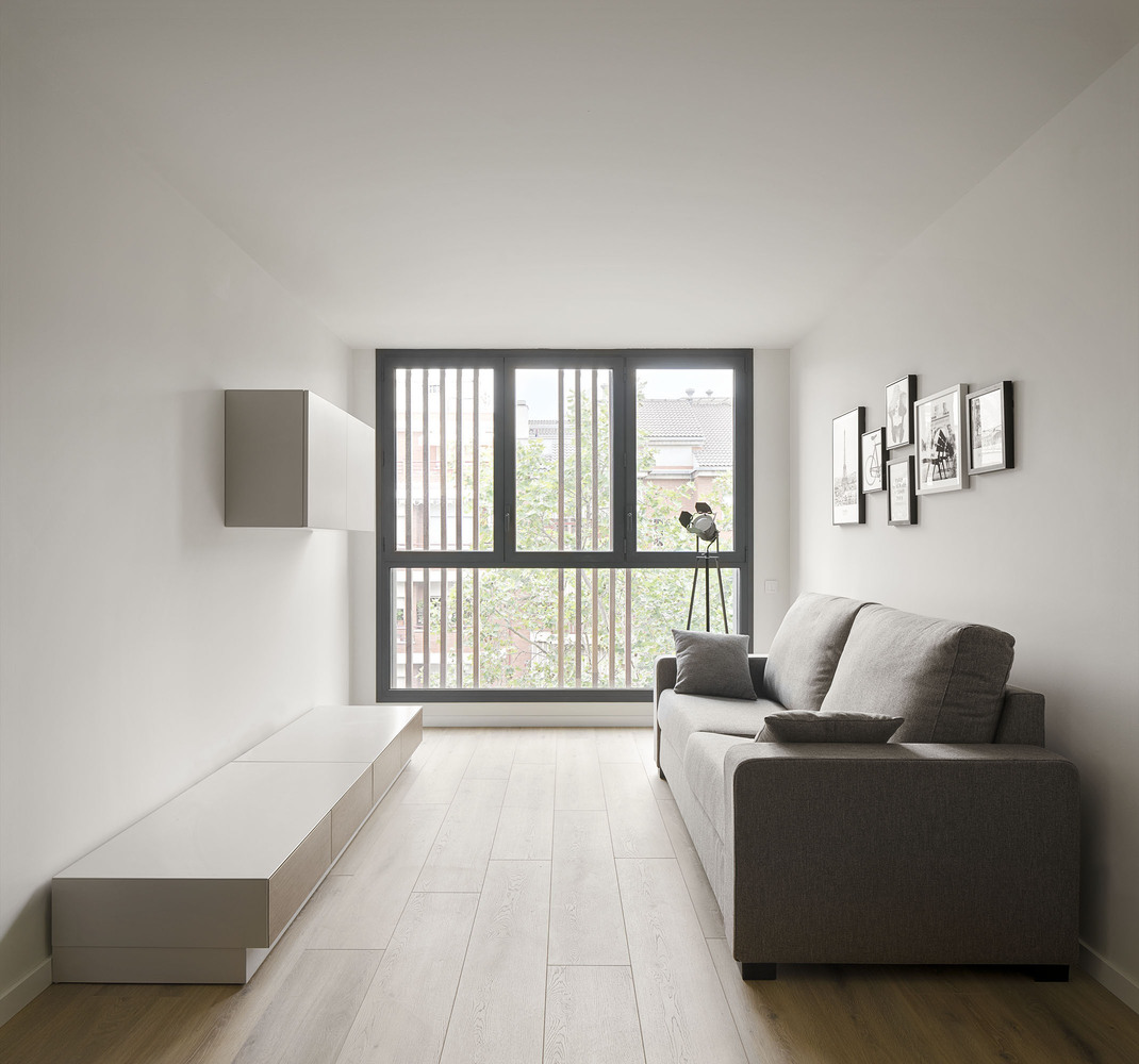 Sustainability is at the core of the Joaquim Valls housing project. The development is designed to optimize energy efficiency, featuring insulation systems that improve thermal and acoustic performance and the use of low-emissivity glass to reduce energy consumption. An aerothermal system provides heating and domestic hot water, showcasing the project's commitment to reducing its environmental impact.