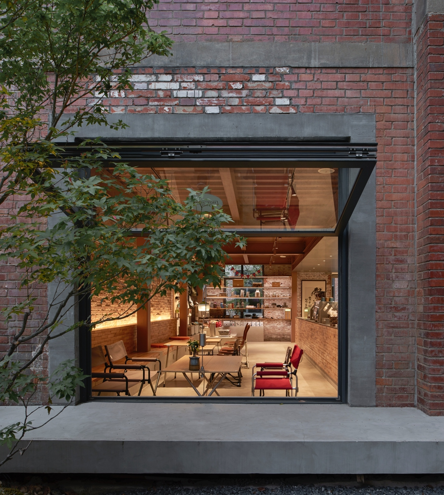 The cafe is part of the MATRO Luxury Centre redevelopment, where 22 red-brick warehouses have been reimagined into a cultural destination inspired by Suzhou’s classical gardens. Architect Yoshihiko Seki preserved the industrial textures while introducing a new architectural language aligned with Snow Peak’s philosophy of “Embrace Your Nature.”