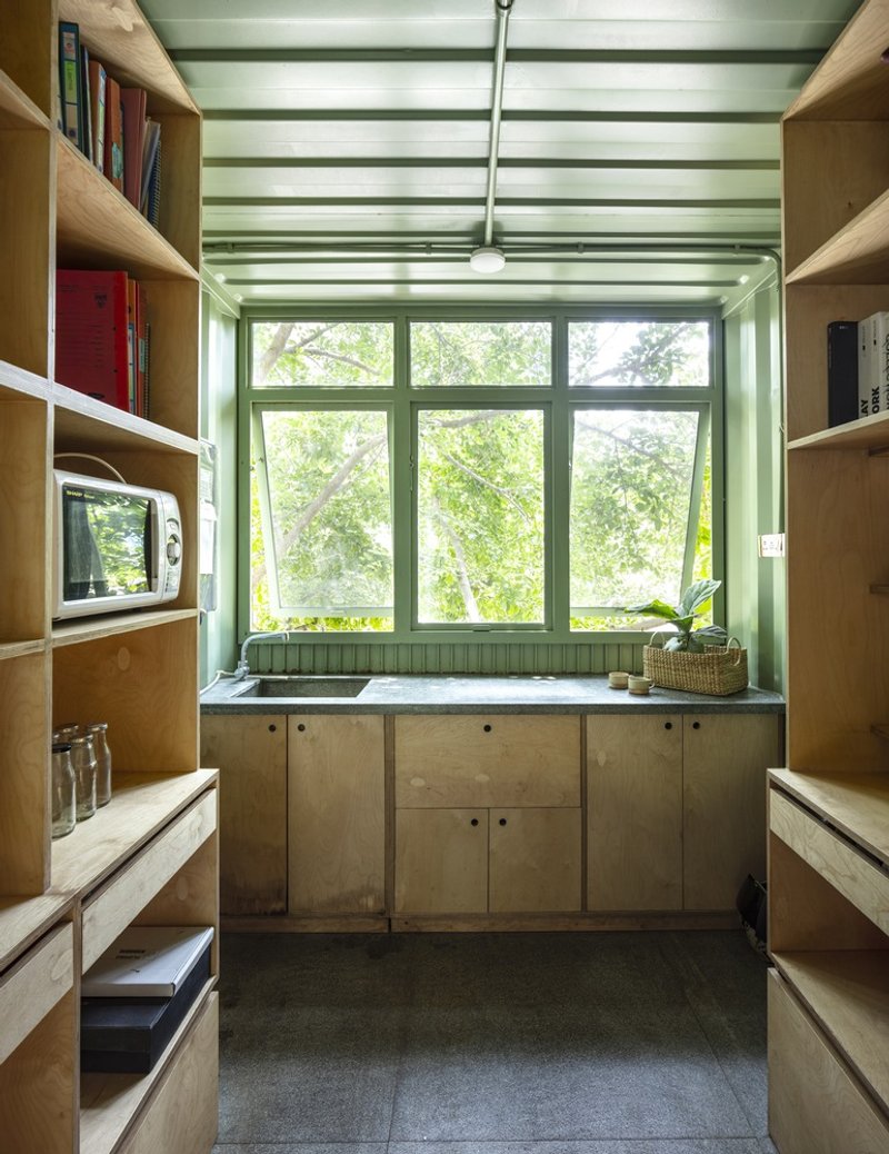 - A retrofitted shipping container, transformed into a material library for research and experimentation.
