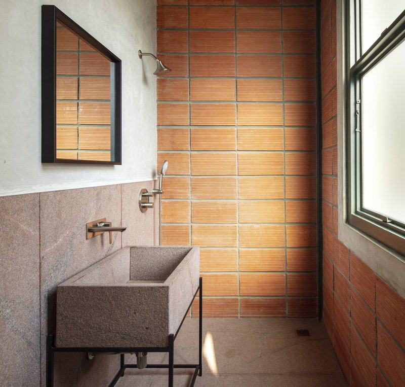- Terrazzo floors made from recycled chips, cast on-site.
