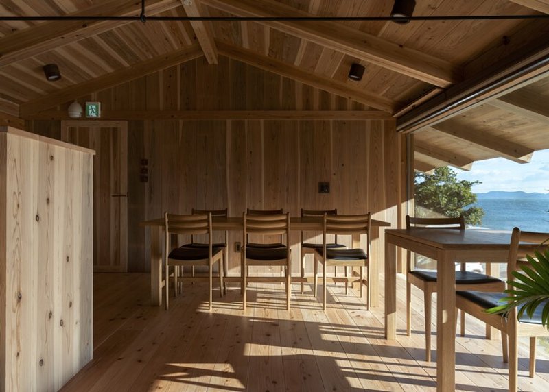 Terabe Guest House by Tomoaki Uno Architects is a serene wooden structure on pilotis, blending craftsmanship, coastal views, and contemporary Japanese architecture.