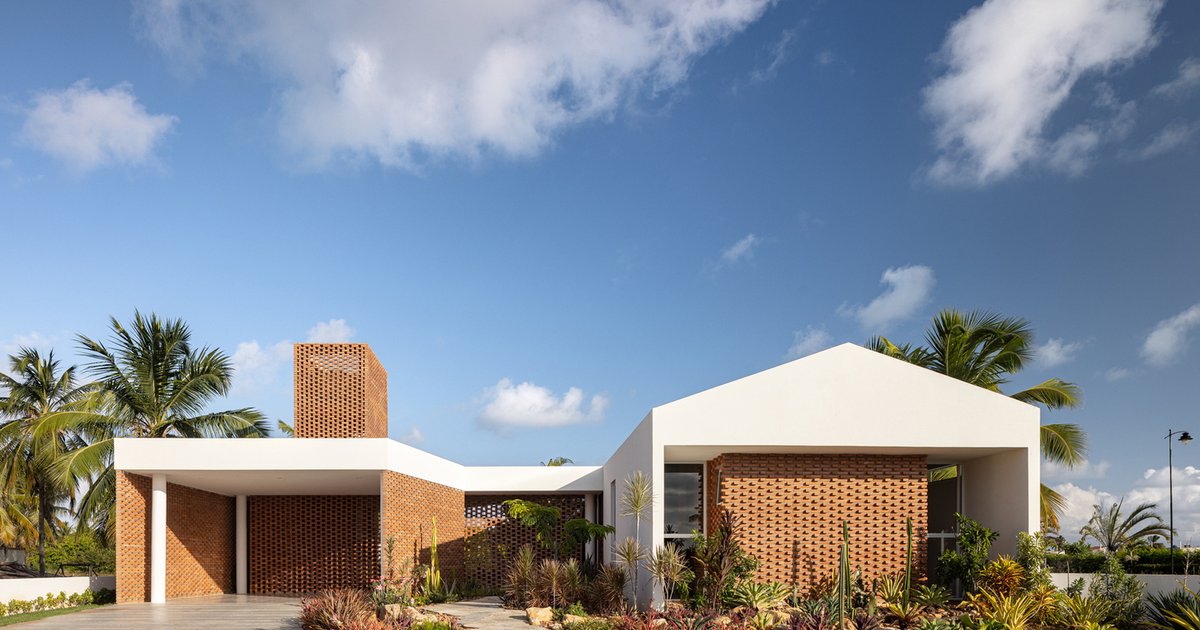 Thai Residence blends brick, wood, and passive design to create a climate-responsive coastal home with natural ventilation and tropical landscaping.