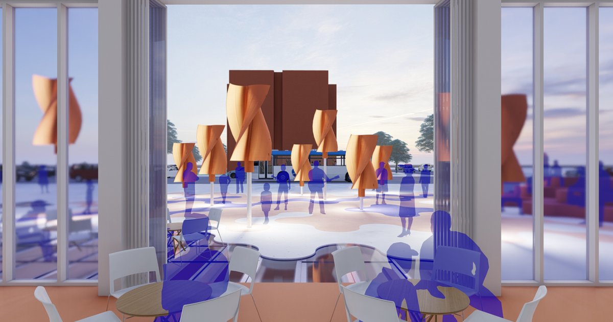 We designed the green space distribution in a way that does not restrict people's access to the exhibition area. In this way, we brought people together with art with the exhibition area and pavilion that opens and closes without having to enter a building. The purpose of using the pavilion in the design was to ensure that it was in its free space. Our pavilion consists of wind turbines of different sizes and heights that can work with the wind of Chicago, the wind city, while at the same time people can move between them and touch and rotate them by hand.