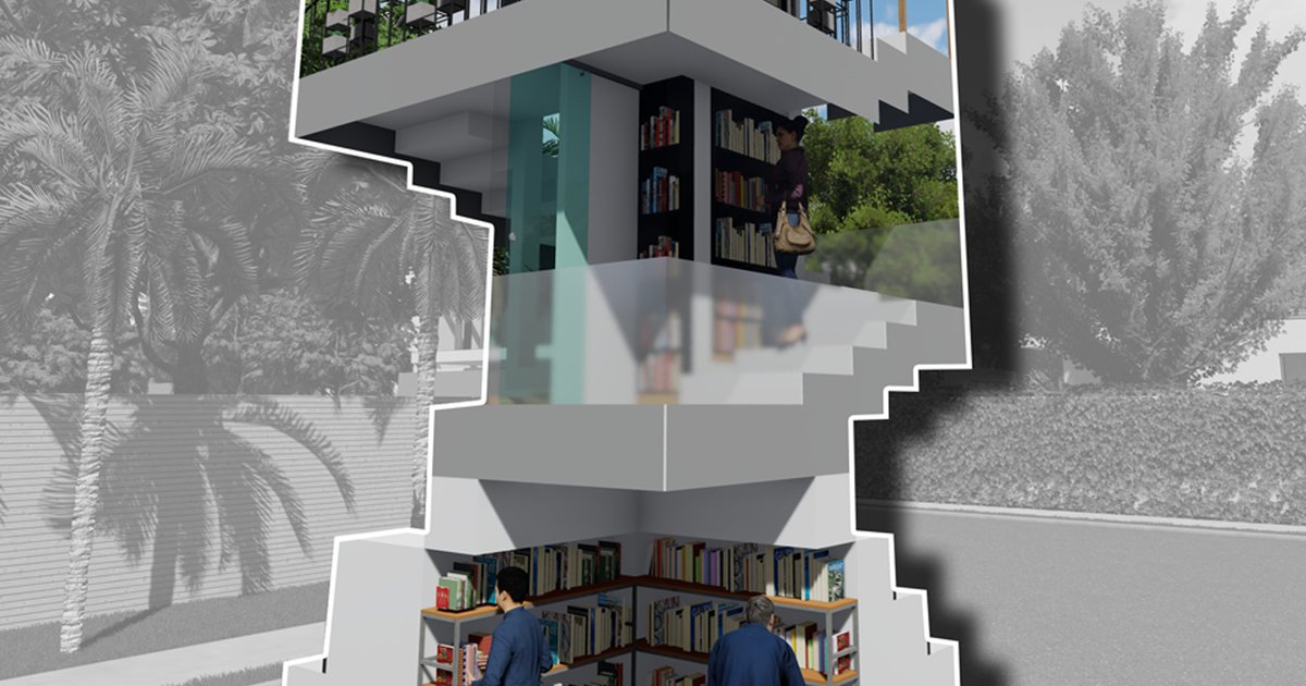 Micro libraries as a project caters to the post pandemic new normal of getting habitual to old charms of public spaces all in one place. The project was approached with a view of creating spaces adaptive to different urban and natural fabrics. The module represents the individualistic character as one body with various experiences within the inner parts. The design intention of the micro library is focused on internal spatial quality which enhances the interaction with the structure . The evolution of design has a flexible approach towards changing time. The elements such as stairs have played vital roles in space planning as well as functionality. The vertical movement in the module creates hierarchy of spaces with different themes according to study of user profile. Play of open, semi-open and enclosed spaces features the form development of the project with step profile running along the facade in helical path. Multiple permutation and combination of steps were explored to achieve the desired module. Storage requirement is fulfilled through space management within the riser of the steps and bookshelf attached on the structural members allowing clear passage for the users. The smaller steps leading to the intermediate levels give directionality to the entrance of the structure. The outdoor quick reading section is represented as the old library booth with rustic gestures and majorly designed for the user profile with fast pace seeking for newspaper, magazine and daily updates. The first floor comprises a hammock, hence categories under both kids as well as adults. Bookshelves are placed at the periphery of the hammock to avoid accidents led from falling books. Hammock sits on the central core with double heighted space supported on the structural members. The space is enclosed yet allows visually permeability creating an attraction point for the outsiders. The second floor has semi-open formal sitting with a natural touch of planter boxes and hanging creepers. The opening is facing towards the open space that allows ventilation and a relaxing environment to encourage reading. The module rooftop is a mirror of the step pattern in the ground floor to balance out the heavy aesthetics. The open to sky space has soft-scape area, and serves as a green roof garden. The structural framework is a centralized steel stanchion supporting a vertical square core supporting the horizontal floors. The material such as glass allows the visual assessment of spaces encouraging interaction between inside and outside. This module adapts to any background ranging from urban fabric city squares and landscape public spaces to a stand alone urban installation.