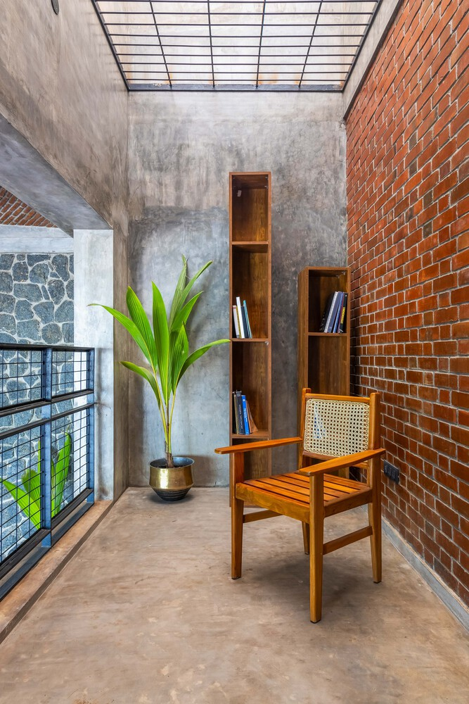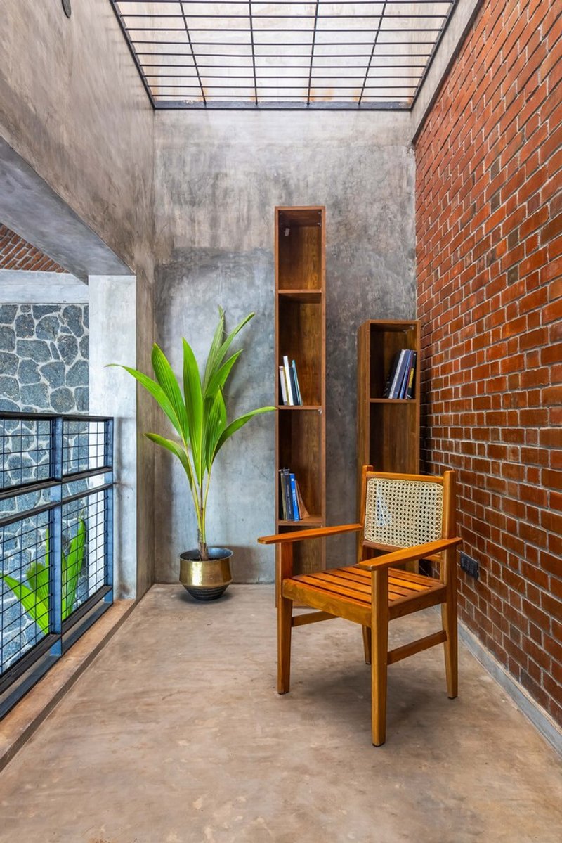 At the heart of the Brick Veedu House lies the use of exposed brickwork. This not only adds a visual warmth to the space but also helps maintain a natural aesthetic throughout the home. The walls are constructed from locally sourced rubble masonry, offering a textural appeal that contrasts beautifully with the clean lines of modern architecture. This combination of brick and modern elements is a hallmark of the modern brick architecture trend.