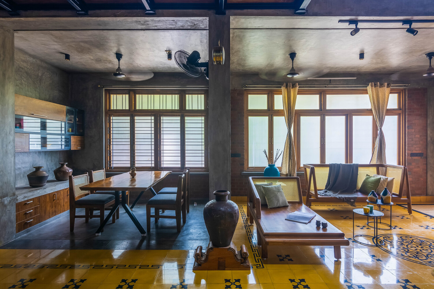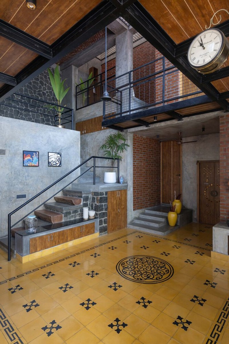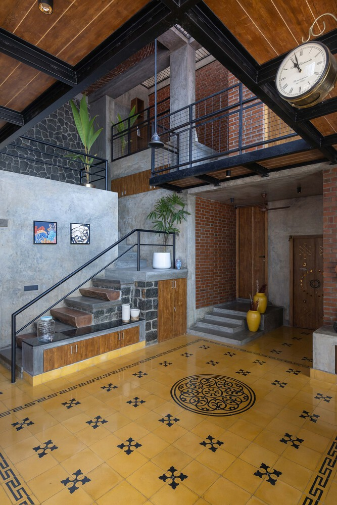 One of the most striking aspects of modern brick architecture is its use of natural materials. In the Brick Veedu House, the focus is on creating a warm, inviting atmosphere that also promotes sustainability. The use of Athangudi tiles, a vibrant handmade tile from a local village, adds color and texture to the home, creating a luxurious yet grounded feel.