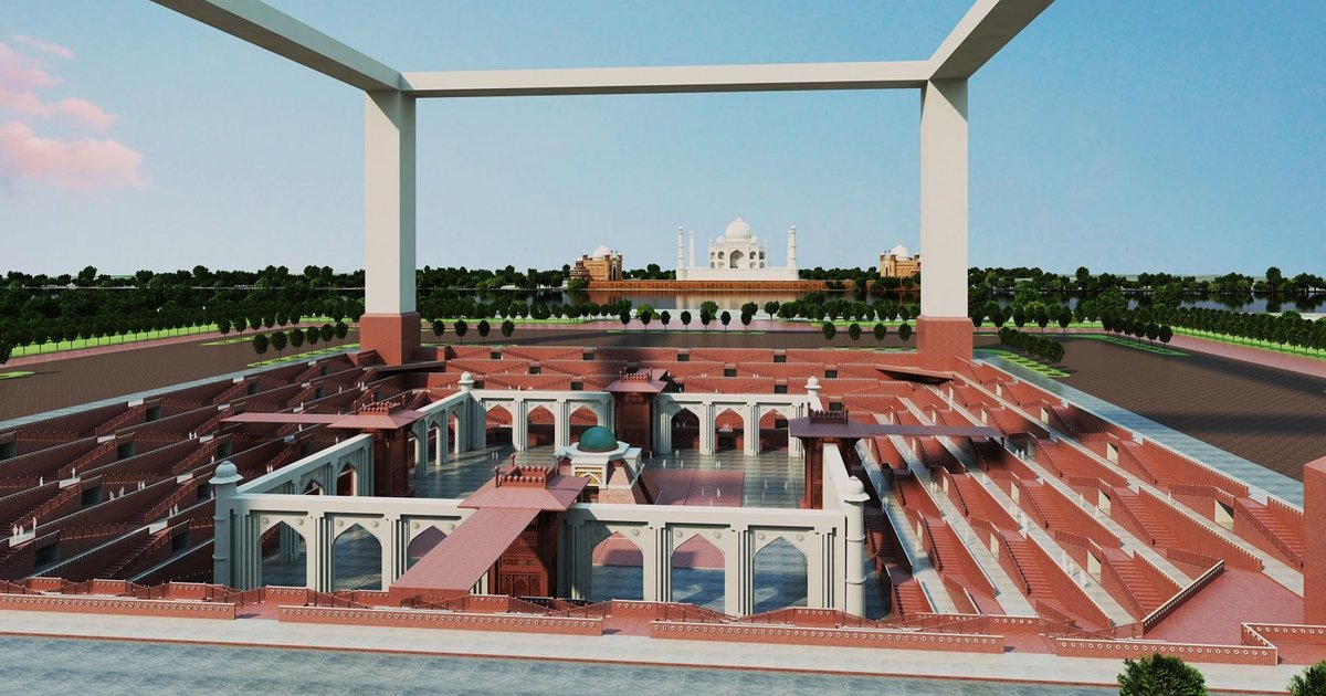 The concept positions the new structure on the opposite bank of the Yamuna, creating a visual and emotional dialogue. This alignment is not merely geographic but metaphysical — one of soul and reflection, light and shadow, love and loss.