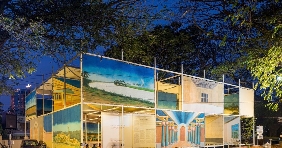 Nestled in the vibrant cultural landscape of Thrissur, India, the BEHIND the SCENES Pavilion emerges as a masterpiece of cultural pavilion architecture. Designed by the innovative LIJO RENY architects, this structure is not just a building but a living narrative of Kerala's rich theatrical heritage, particularly honoring the work of the legendary scenic background artist, Artist Sujathan.