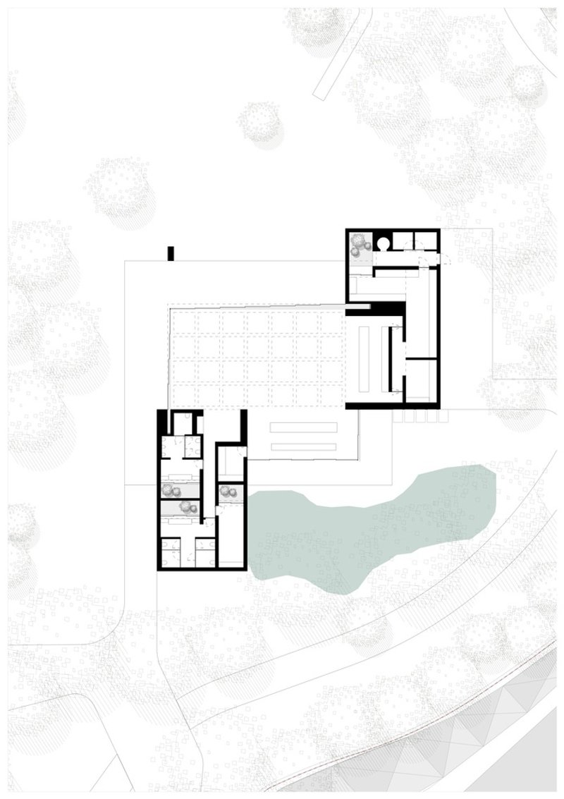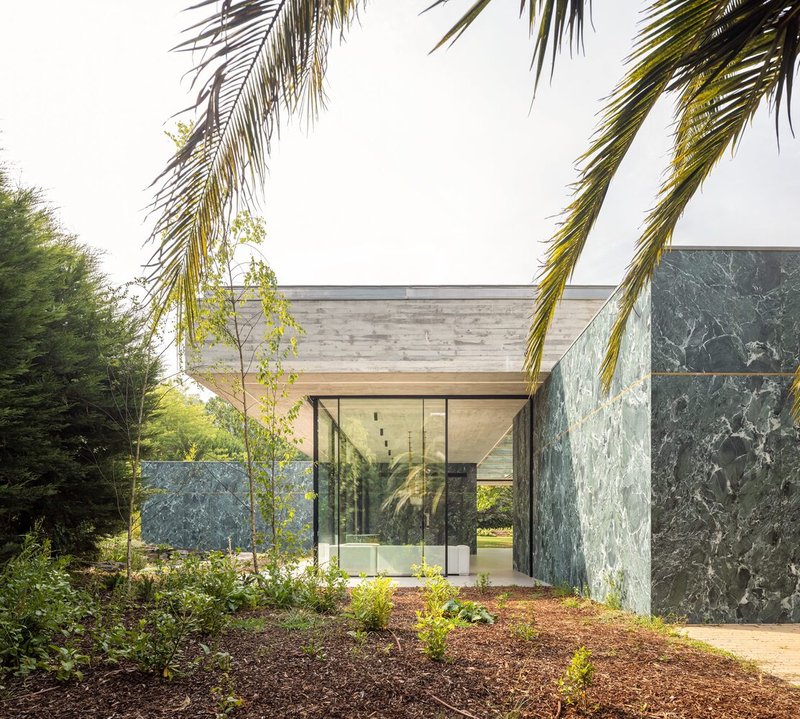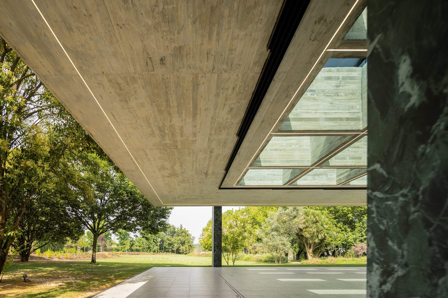 The choice of materials in the Garden Pavilion is a reflection of the project's core philosophy. The use of concrete, glass, and natural finishes contributes to a minimalist aesthetic that emphasizes the purity of form and function. The concrete roof, despite its apparent heaviness, appears light and ethereal, thanks to the strategic placement of glass openings that draw the sky into the architectural composition.