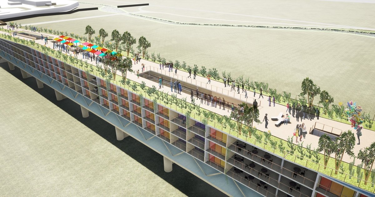 The project proposes a linear, elevated architectural system that operates simultaneously as housing, public infrastructure, and ecological landscape. More than a building, it is a connective urban device designed to bridge fragmented communities while enabling refugees to transition into stable, productive futures.