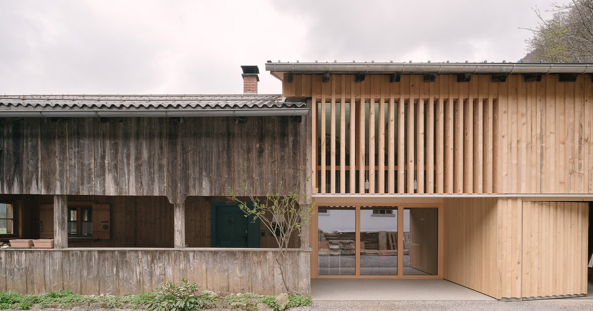 A sensitive renovation blending historic Alpine architecture with a contemporary timber extension, using local materials and sustainable, glue-free construction techniques.