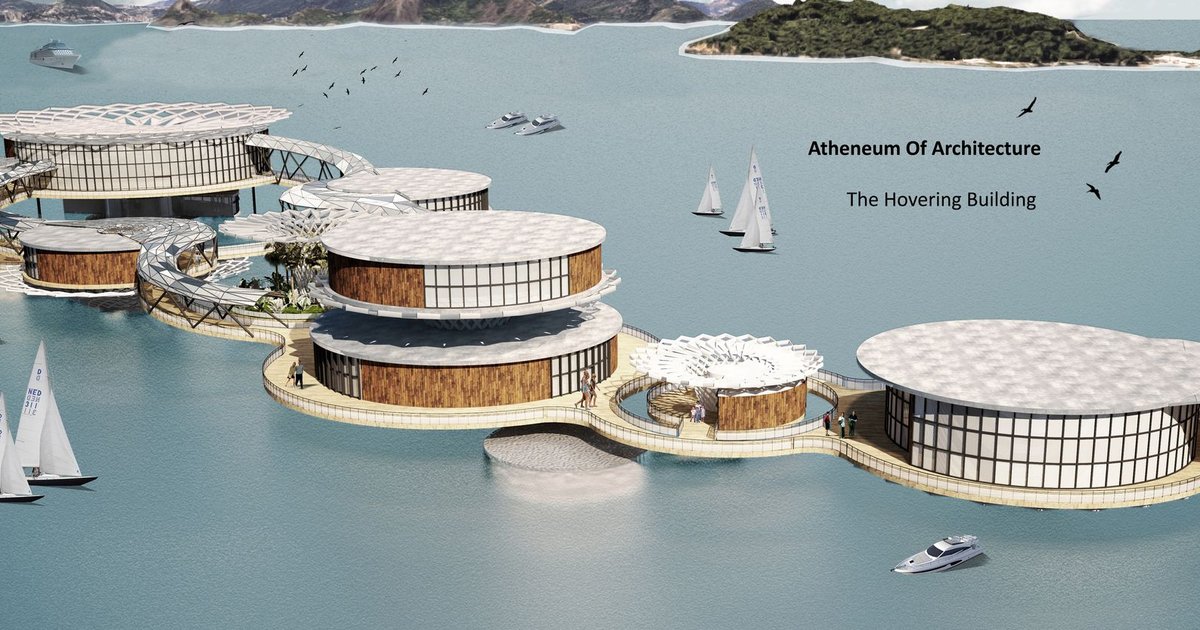 Revolutionizing architecture with sustainable design and innovation, the Hovering Building shapes the future, floating above water.