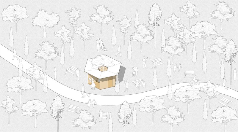 Finally, I find the idea of using the relation between the solid and empty space to create a hexagonal shape spatial with five solids and one empty space. This means five public toilets with a small terrace for people to take a rest. This combination of different spaces makes the whole project interesting.