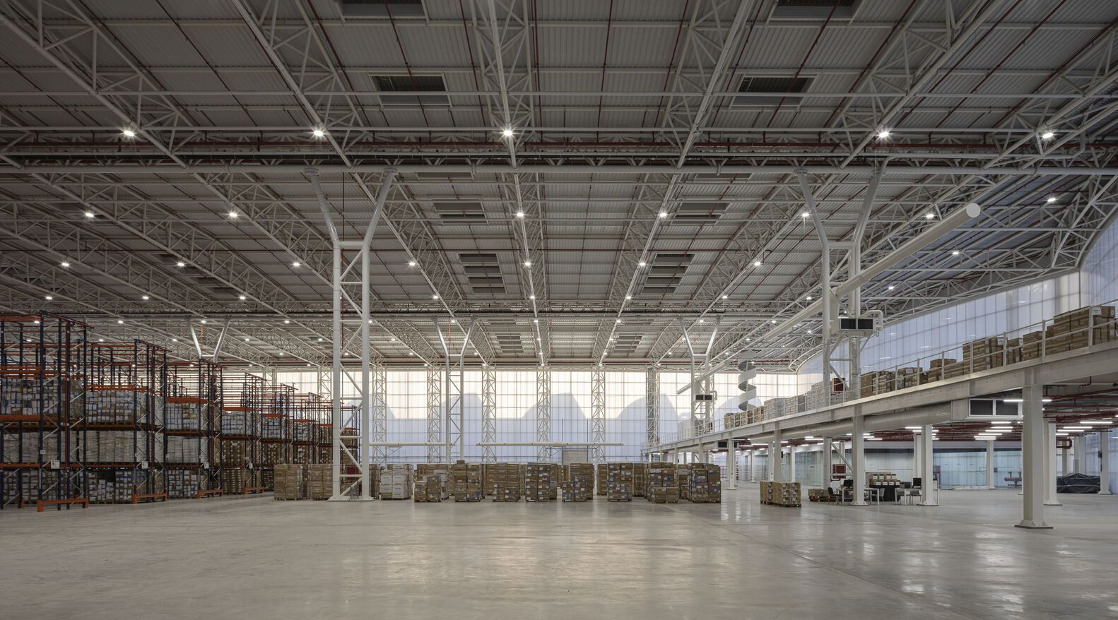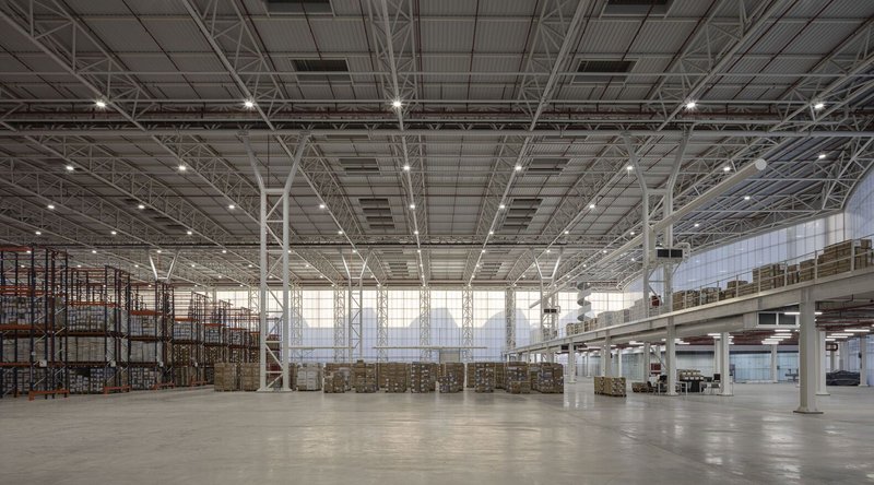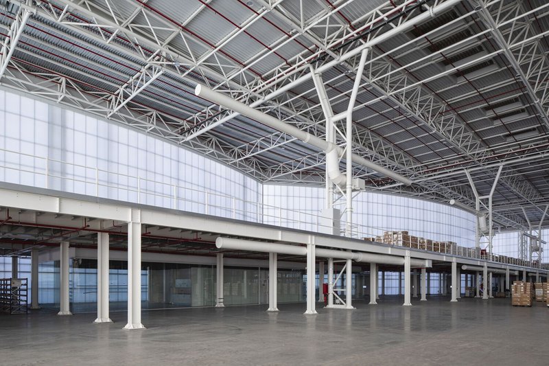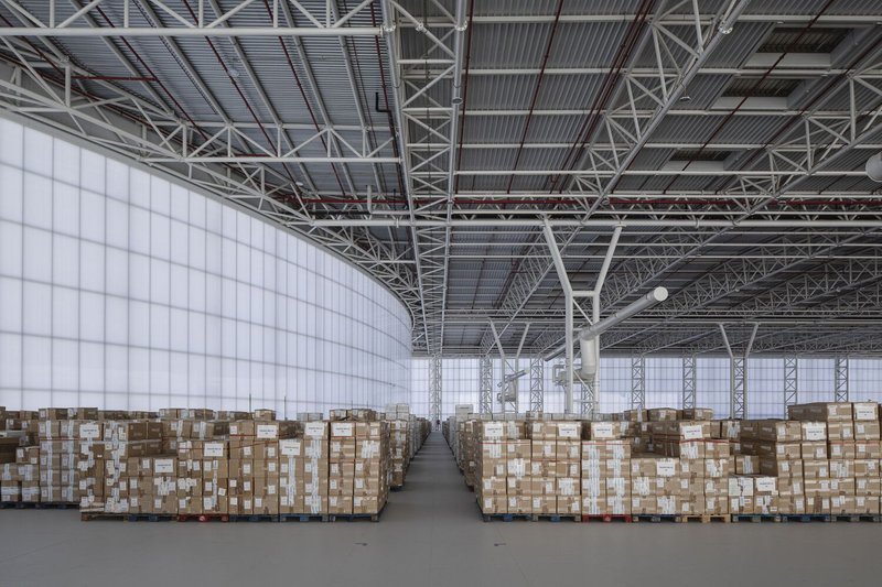 This combination of materials helps regulate the building's internal temperature and significantly improves the thermal transmission coefficient of the facade. As a result, the warehouse enjoys natural lighting throughout the day, minimizing the need for artificial lighting and reducing energy consumption.