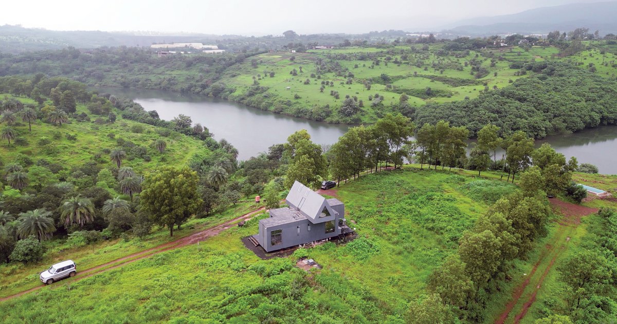 Studio Archohm Plants a Corrugated Metal A-Frame on an Indian Hilltop Overlooking the Ganges