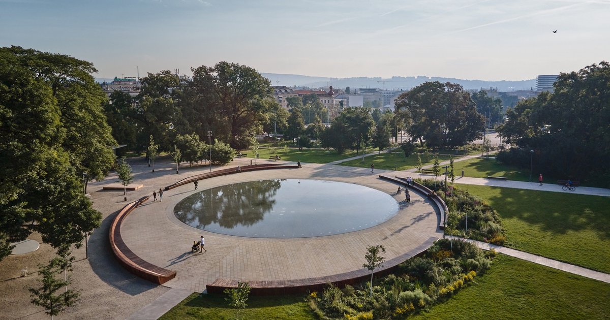The Moravian Square Park revitalization showcases sustainable urban park design, integrating community spaces, biodiversity, and environmental sustainability in Brno, Czech Republic.