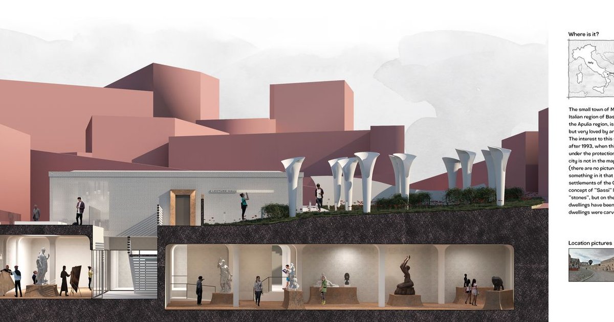 Set within the historic city of Matera, in the eastern part of the Basilicata region of Italy, The Museum of Culture in Matera is conceived as a sensitive architectural intervention that balances heritage preservation with contemporary design. Developed as a diploma and competition project by Gleb Agapov, the proposal explores how contextual architecture can respond to layered history, complex topography, and cultural identity while embracing environmentally responsible design principles.