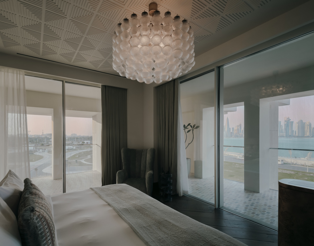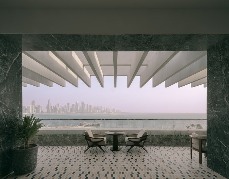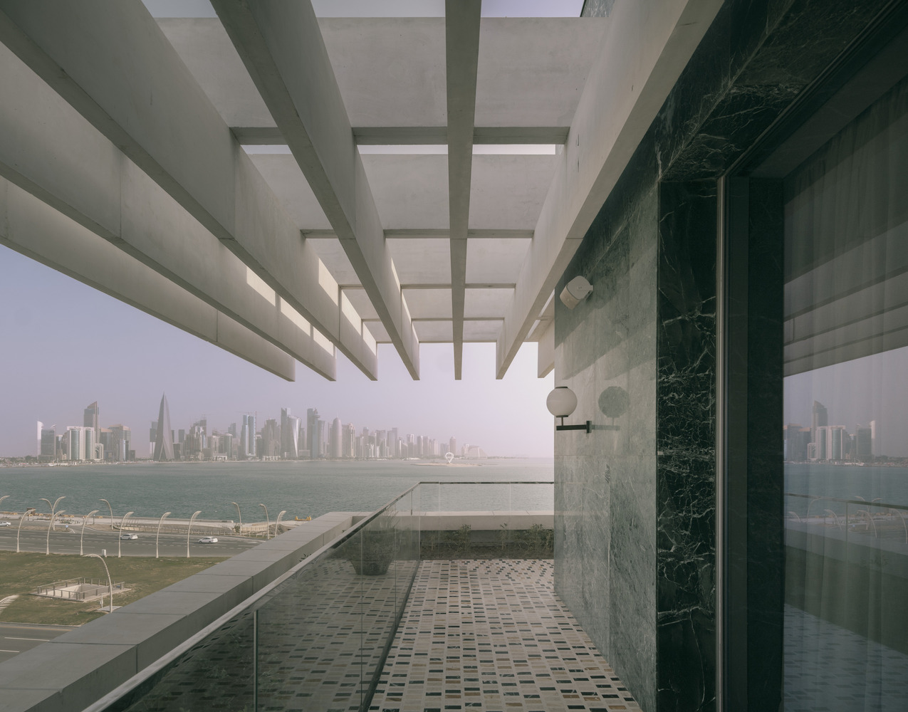 A newly added top floor redefines the building’s silhouette while introducing elevated amenities. The rooftop hosts a wellness spa, a gym, and a private club lounge—each offering sweeping views over the Persian Gulf and Doha’s urban skyline. This addition is seamlessly integrated into the existing structure, continuing the architectural dialogue between old and new.