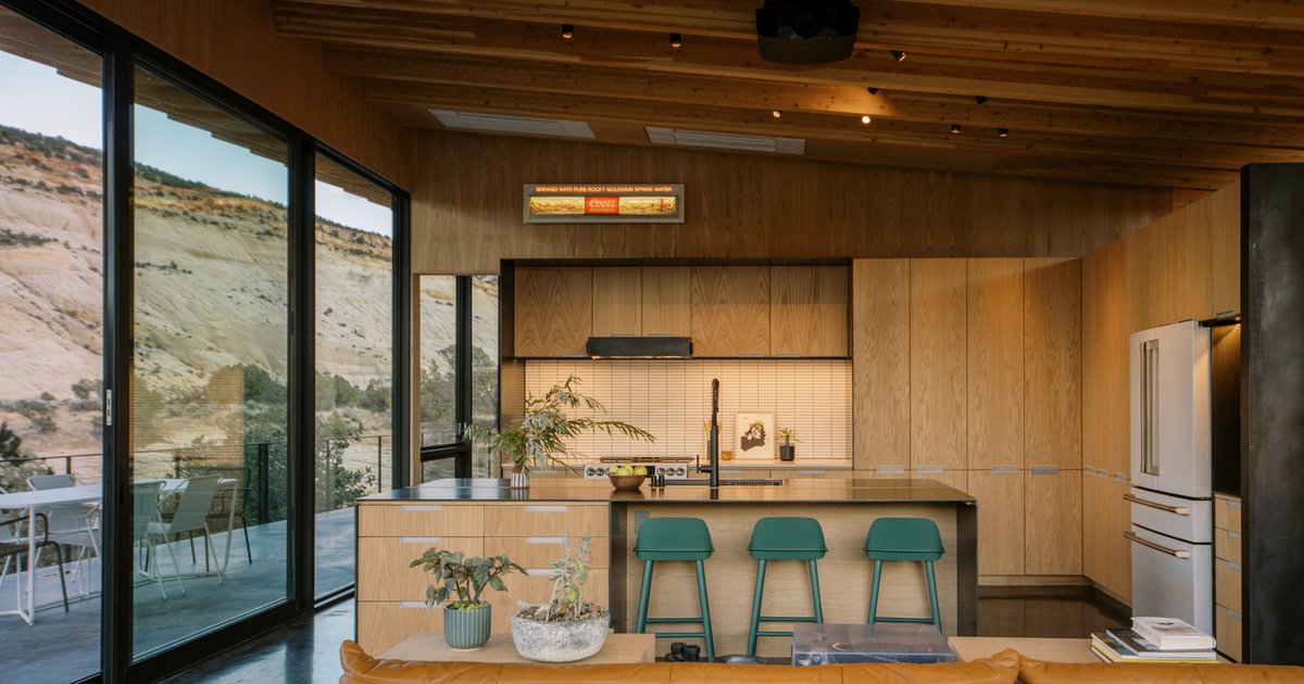 Tucked quietly into the high desert terrain of Utah, near the Grand Staircase-Escalante National Monument, The Periphery House by Locus Studio is a stunning example of desert modern house design. This 2,120-square-foot residence is not simply a structure, but a nuanced composition of light, landscape, and material. Hovering lightly above slickrock and wetlands at 6,300 feet, the house reflects a deep respect for the arid ecosystem while offering a sanctuary that enhances the sensory experience of the desert.
