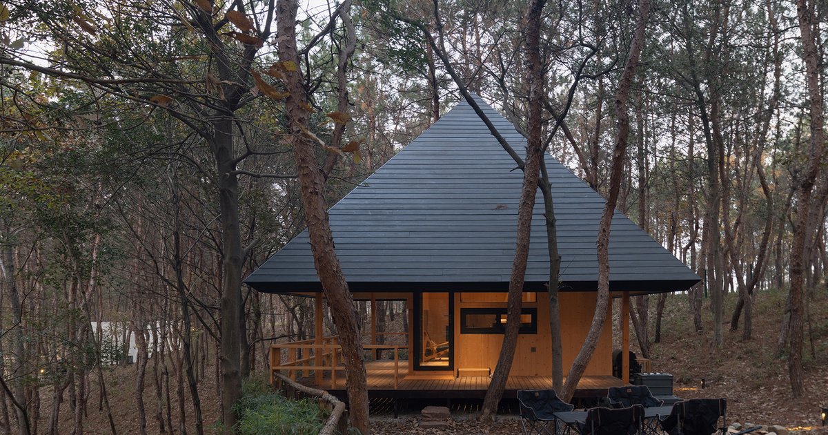 The Pyramid Cabin functions as a modular, prefabricated dwelling. Each cabin is constructed like a large-scale building block, using carbonized wood boards for the exterior and small, reusable metal components for assembly. Elevated above the ground, these cabins avoid artificial landscapes, allowing nature itself to serve as the surrounding package. The design emphasizes minimal intervention while maximizing harmony with the site’s natural rhythms.